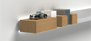 An independent shelf, yet combinable with more elements on the wall, even differently sized.