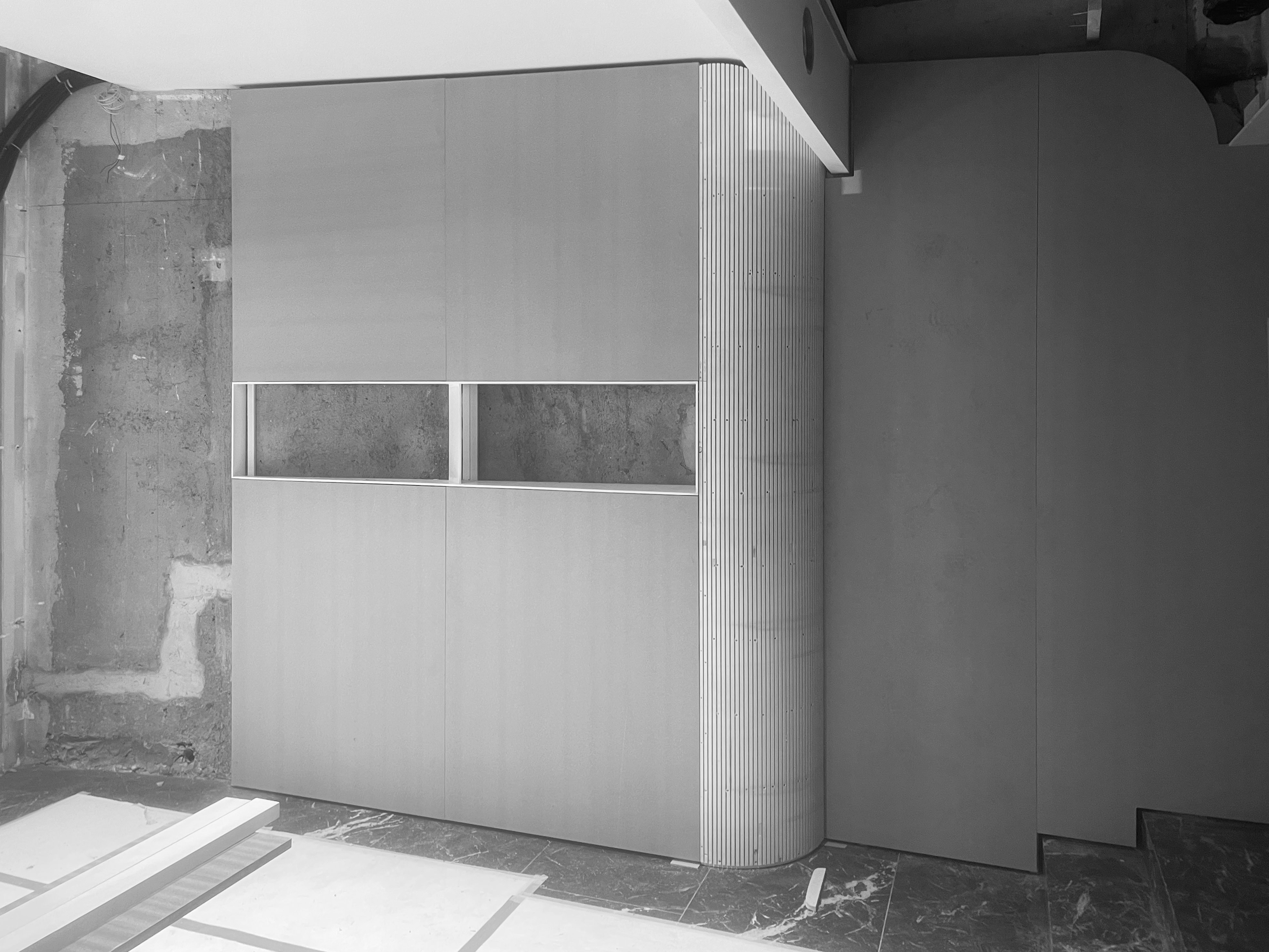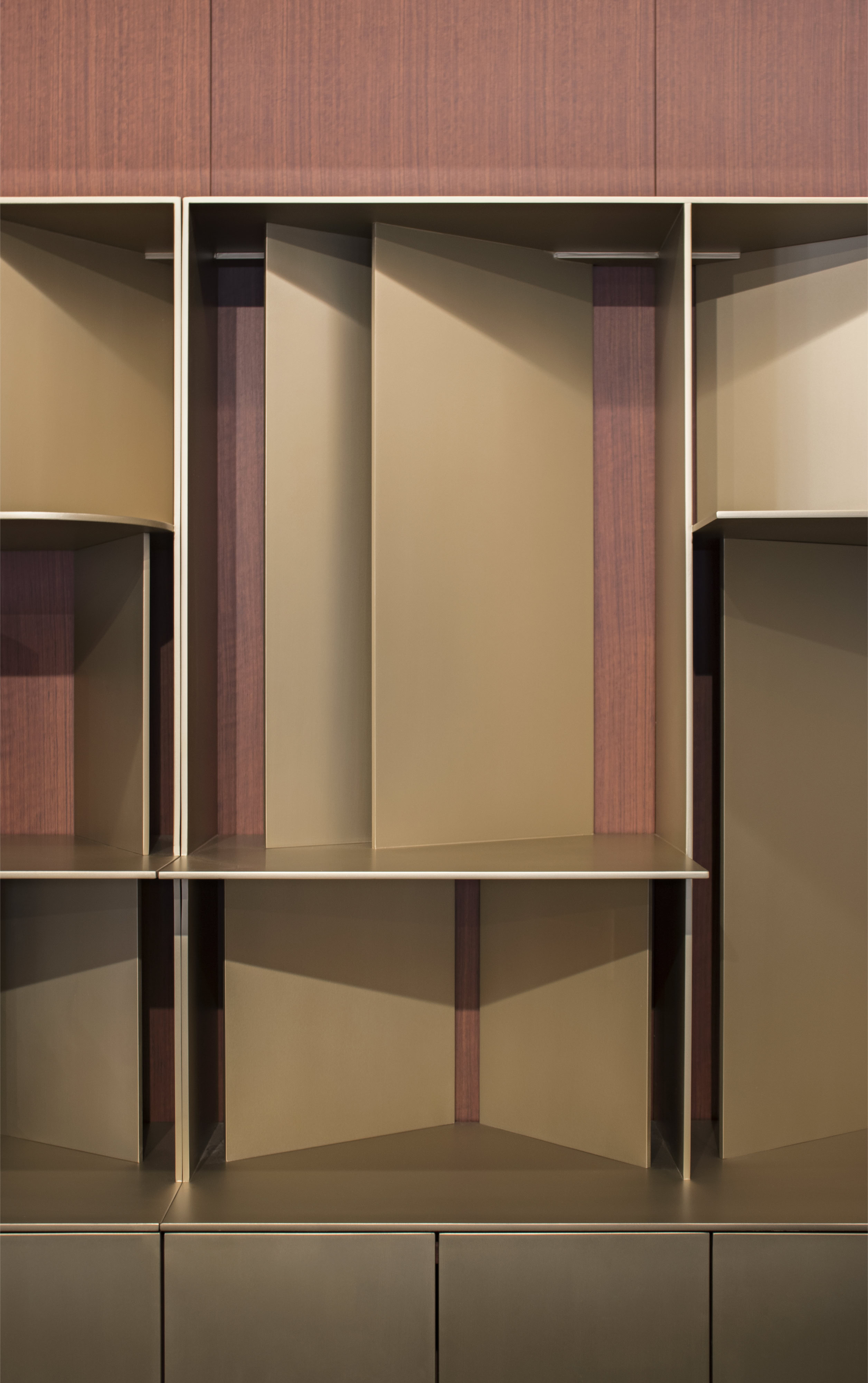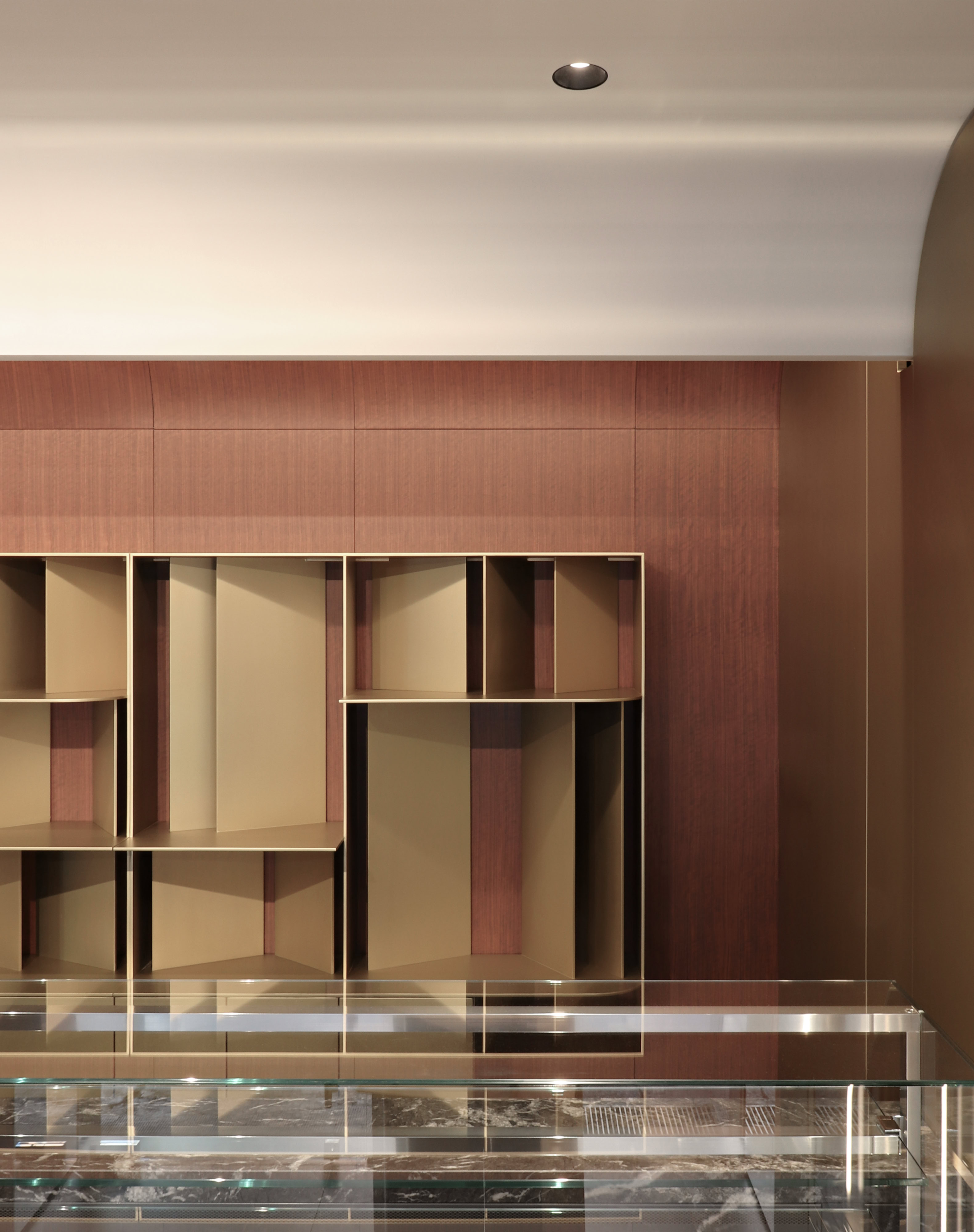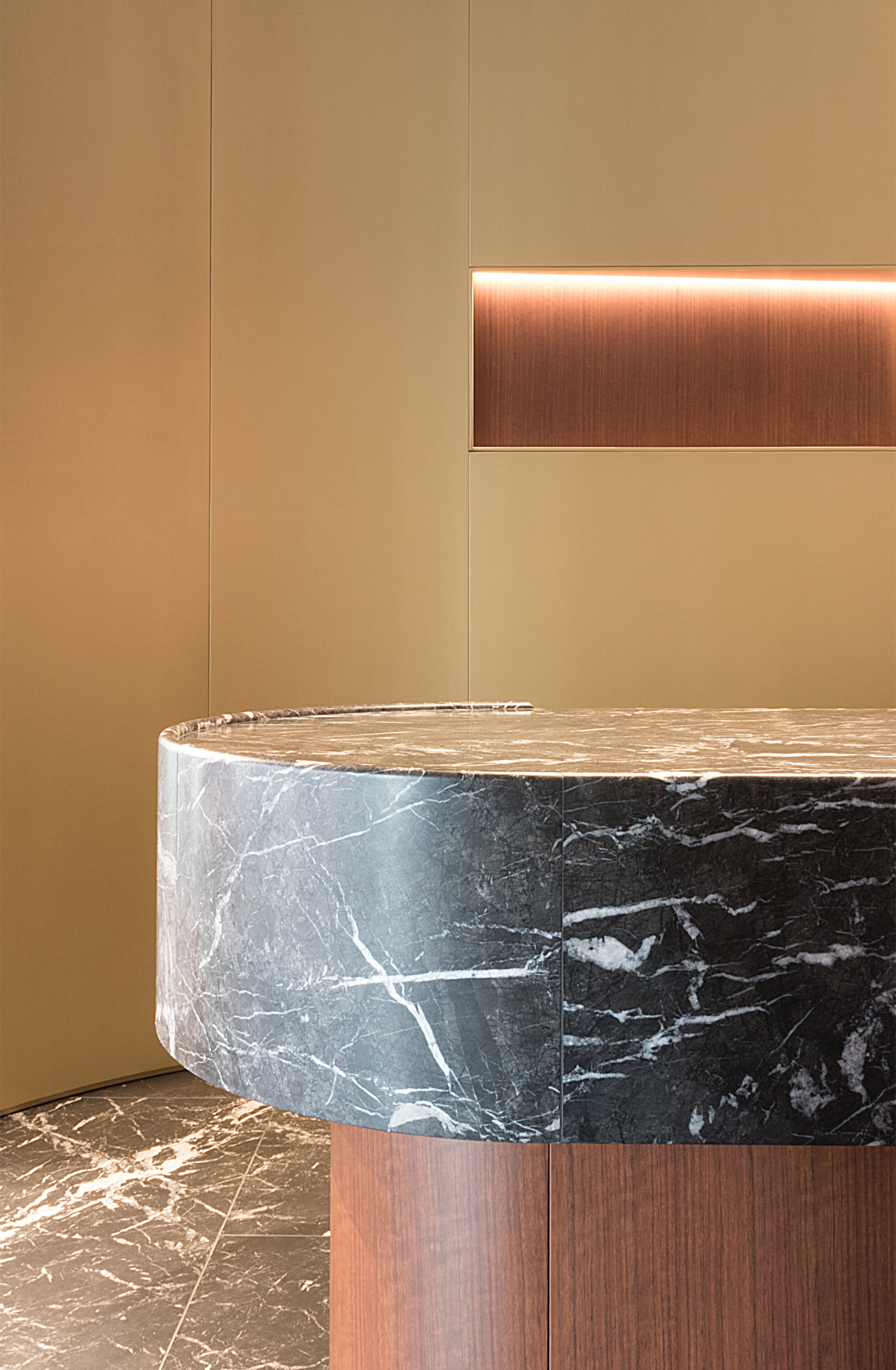 The character of the place and the atmosphere is thus defined by a refined but minimal language, which stands out for its attention to detail, for a wise lighting and for the use of natural materials, such as walnut wood, grey carnic marble and brass. Always looking for the balance between the principles informing the project and the practice of costruction, between theory and practice, between formal intuition and executive solution and technological choice, respecting the existing constraints and the pre-established spending limits.