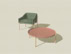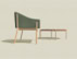 Poltrona con gambe in legno massello di rovere o frassino e scocca in acciaio schiumata in poliestere espanso rivestito in ovatta di poliestere.