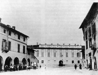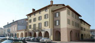 Nell’ambito del generale intervento di riqualificazione della scena urbana sulla piazza, è prevista la realizzazione di un nuovo portico, a completamento del porticato esistente.