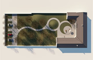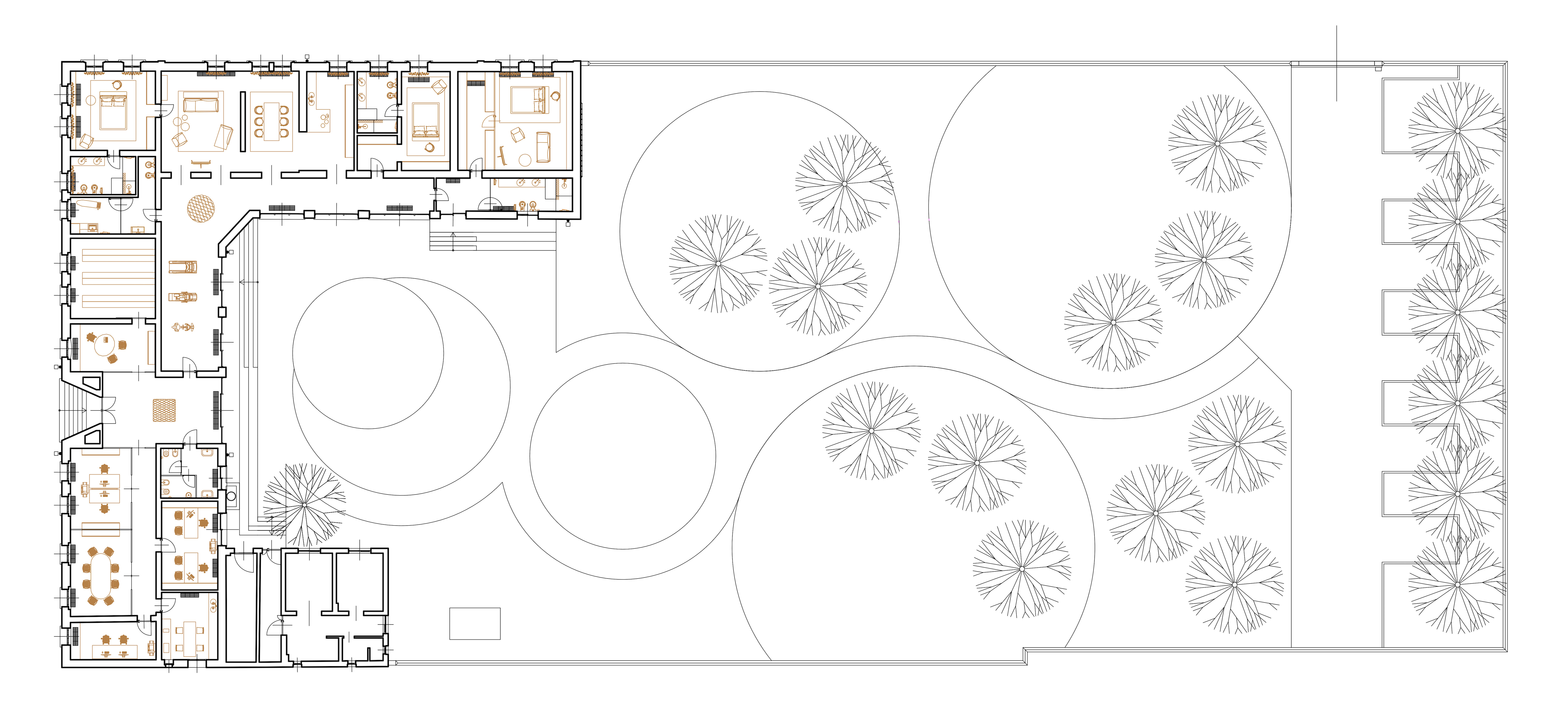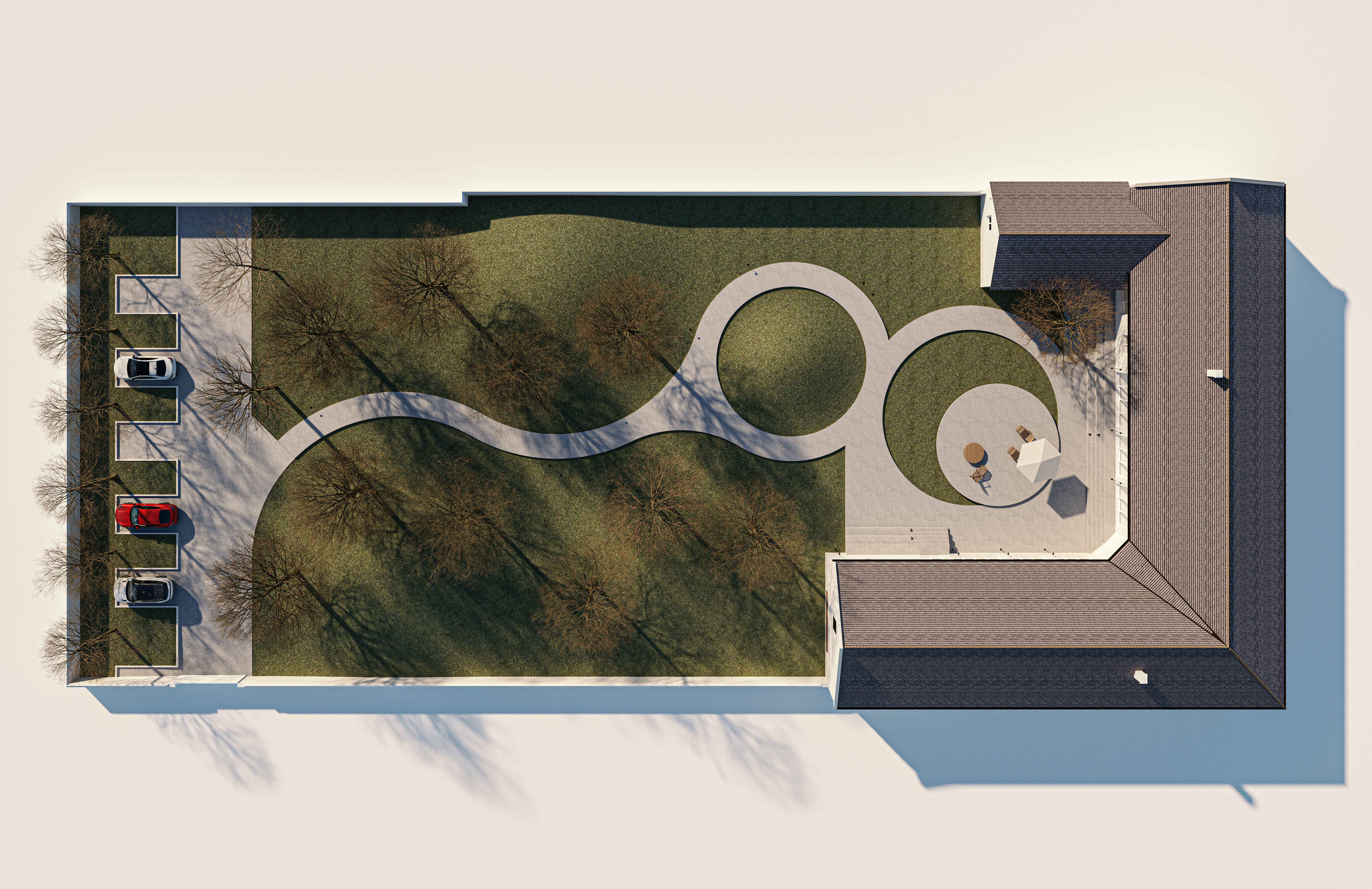 Intervento di ristrutturazione, interior e garden design per un edificio storico ad uso uffici e residenza in Jimbolia.