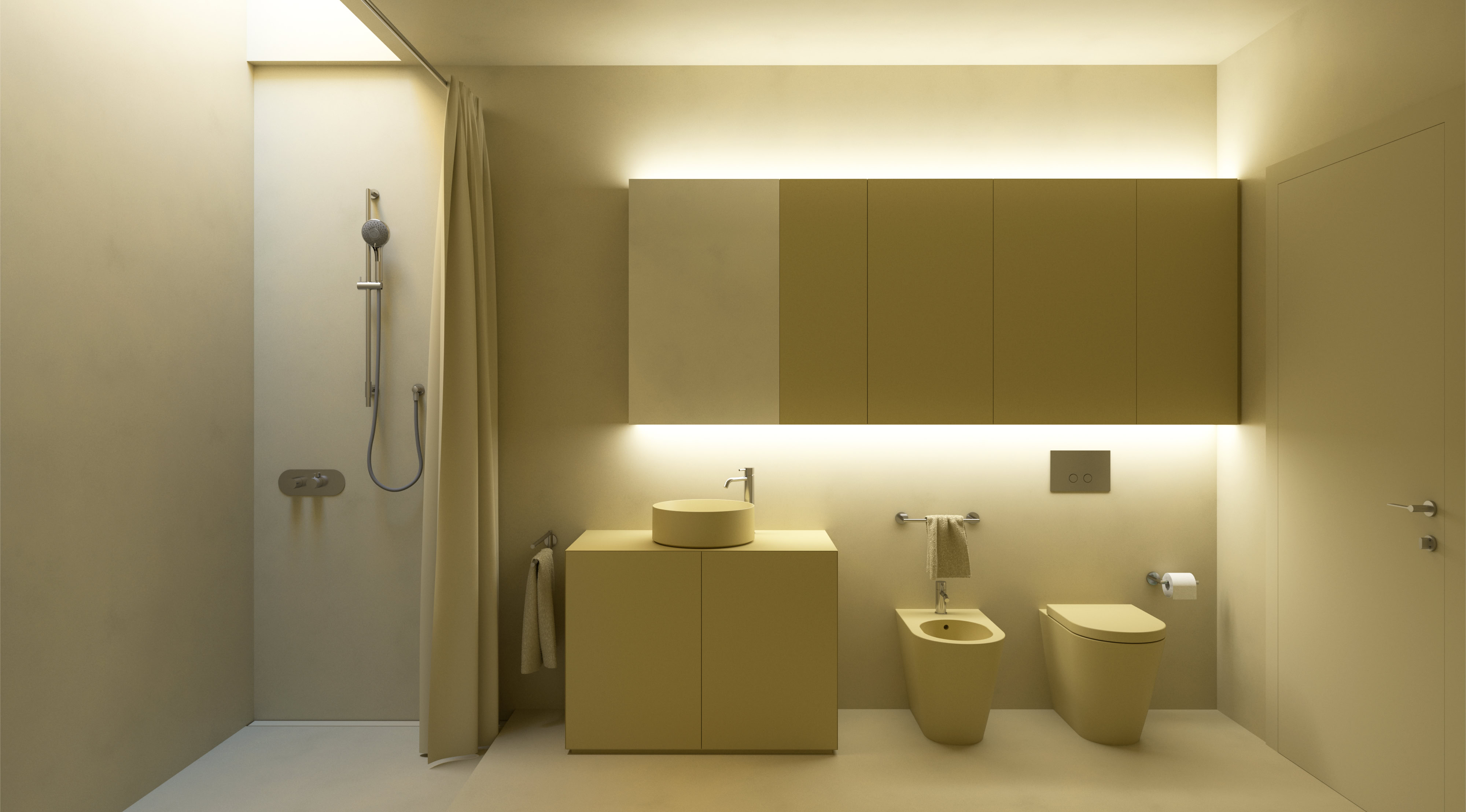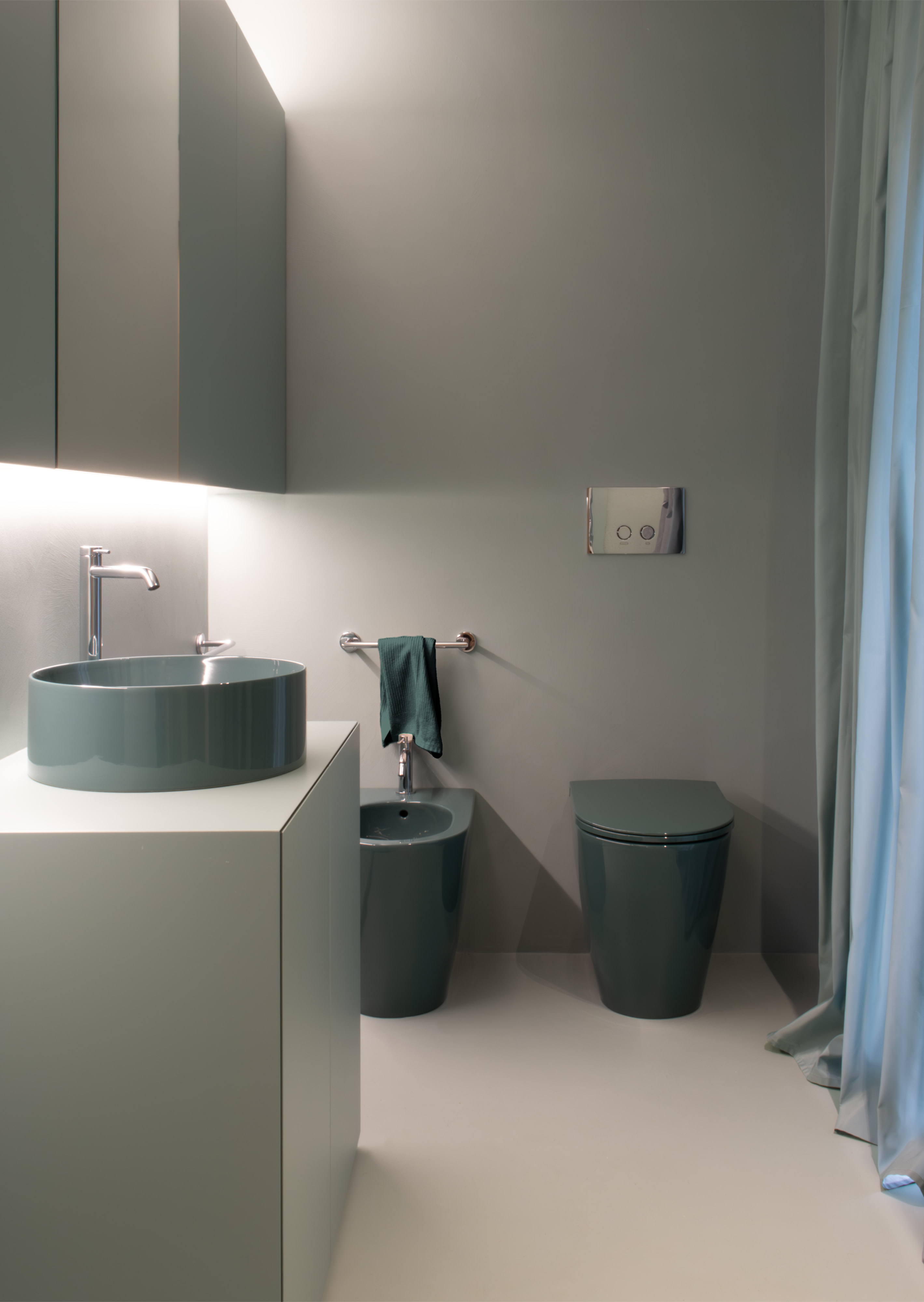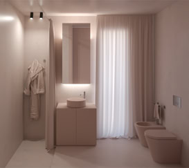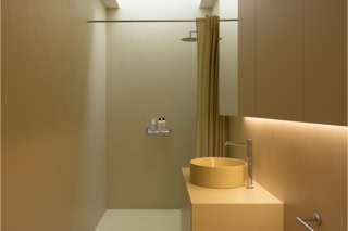 I bagni riservano la sorpresa di un accostamento cromatico inatteso, introducendo accenti giocosi di colore.