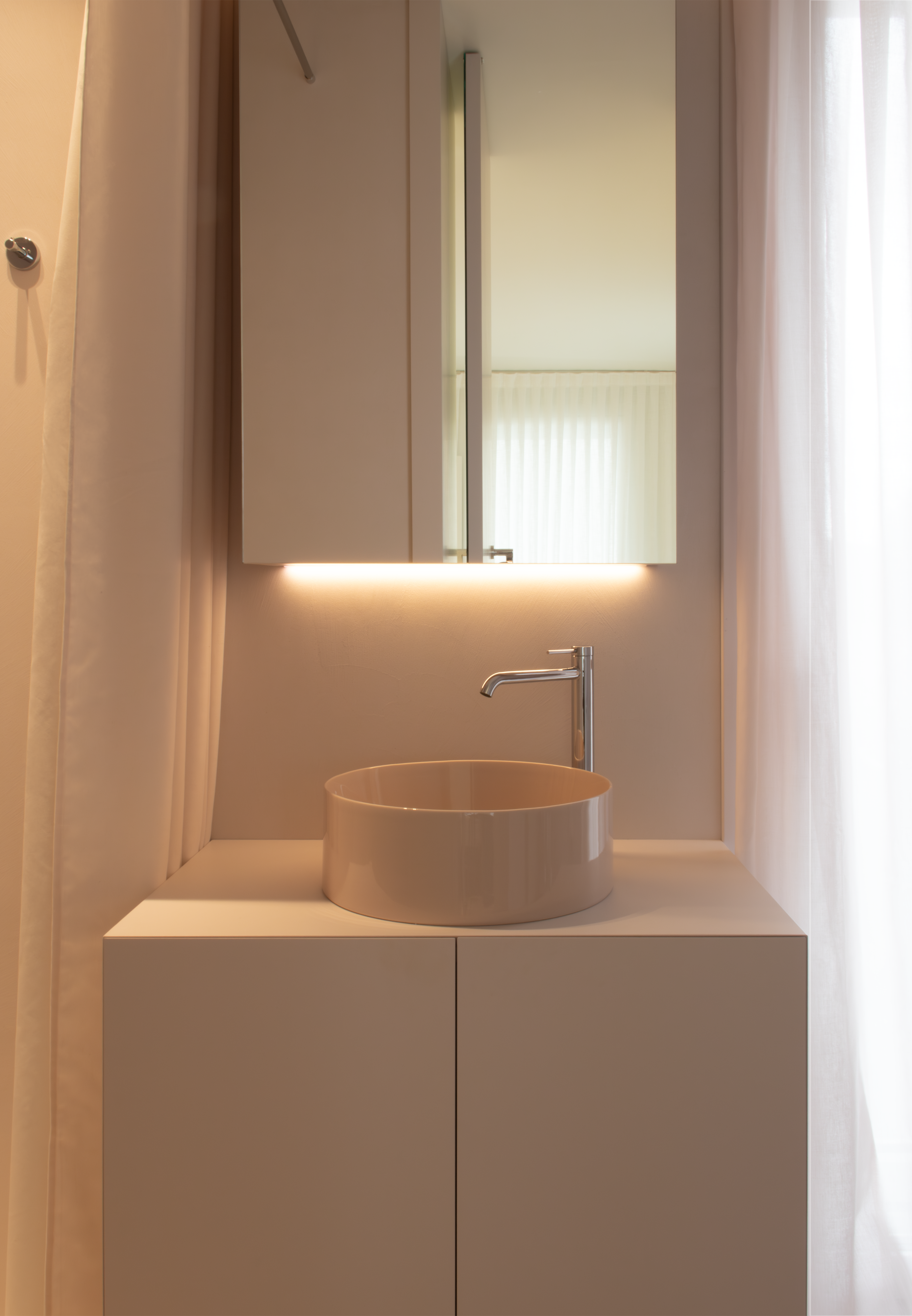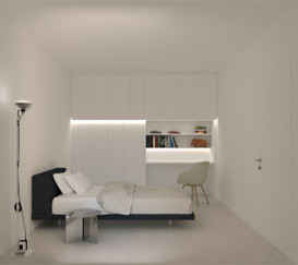 L’interno è, nel complesso, una fusione di elementi minimali che genera un’atmosfera di armonia e tranquillità.