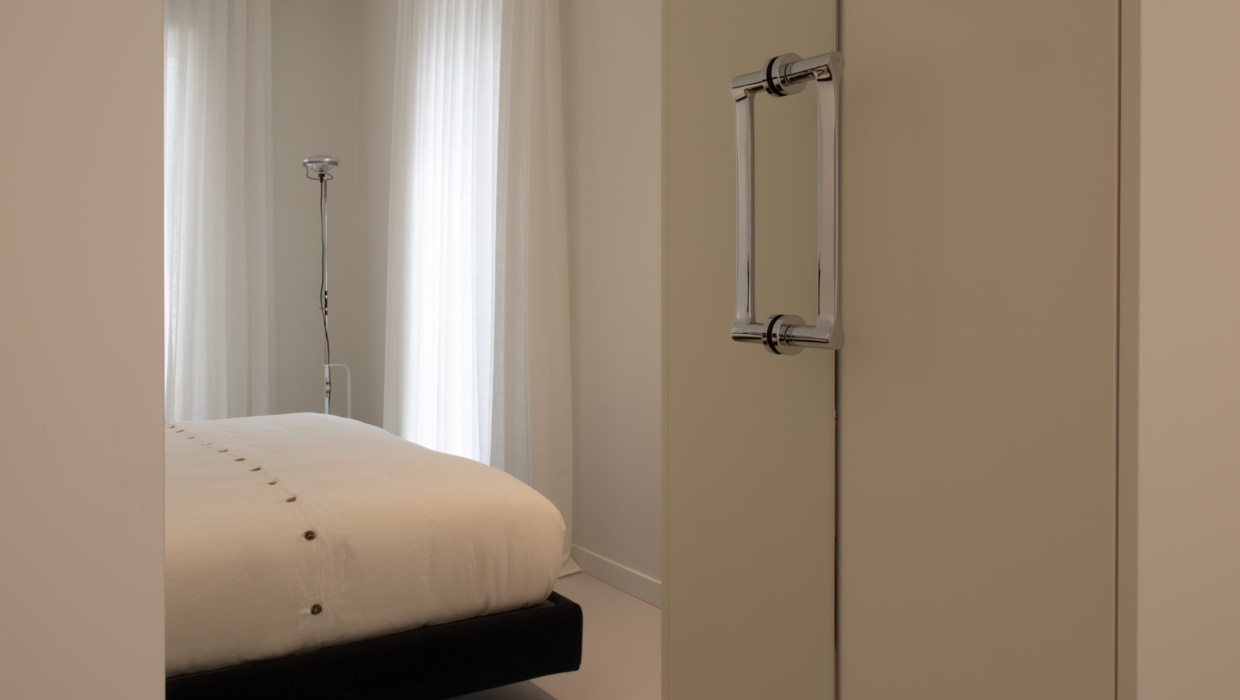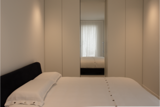 La zona notte si contraddistingue, anch’essa, per gli arredi su misura e per i colori chiari che pervadono tutta la casa.