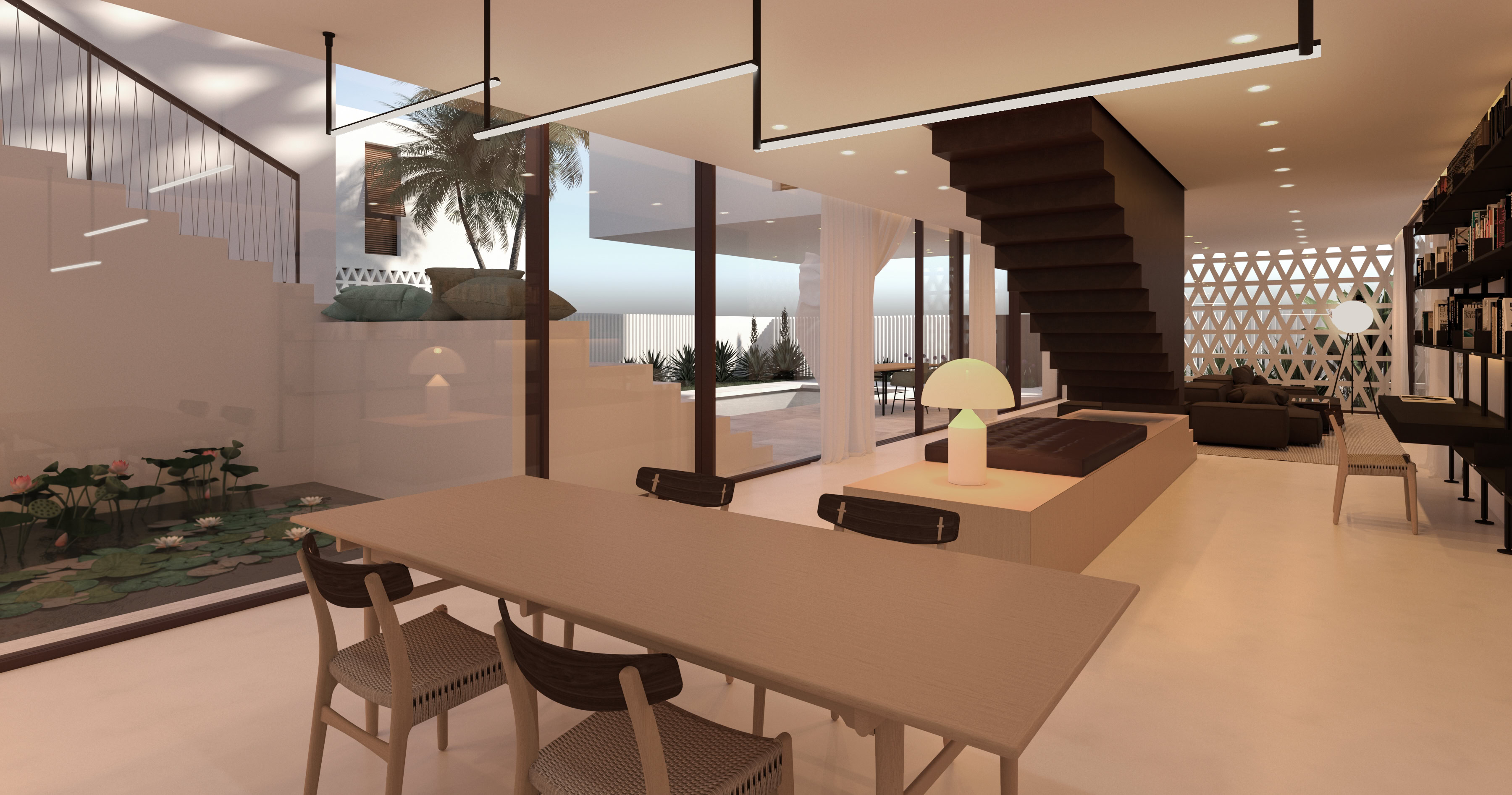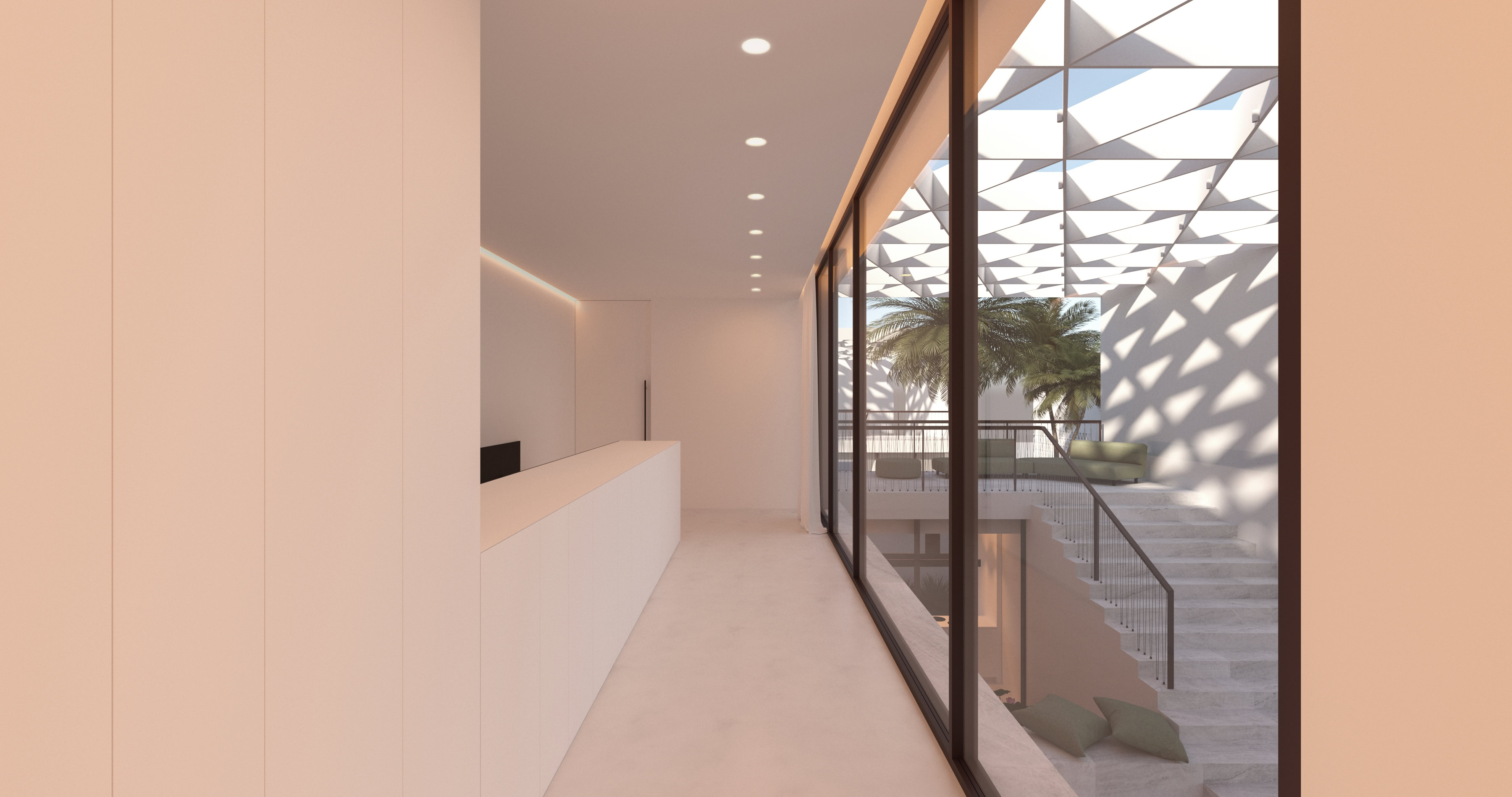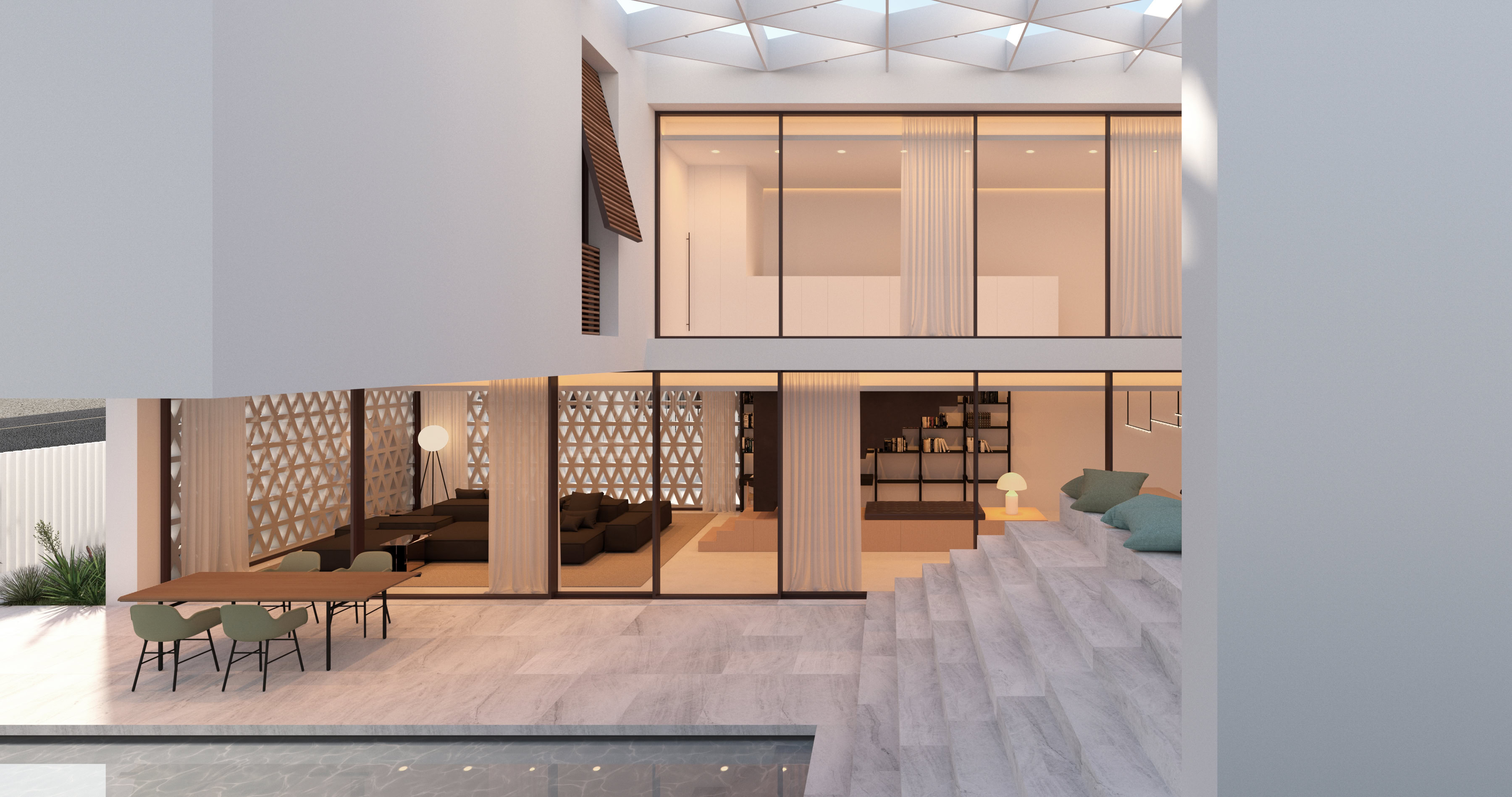 Il progetto soddisfa le esigenze funzionali predeterminate e reinterpreta in chiave contemporanea la filosofia abitativa del Medio Oriente. Allo stesso tempo tiene conto della necessità di ridurre l’apporto solare, senza rinunciare all’illuminazione naturale interna.