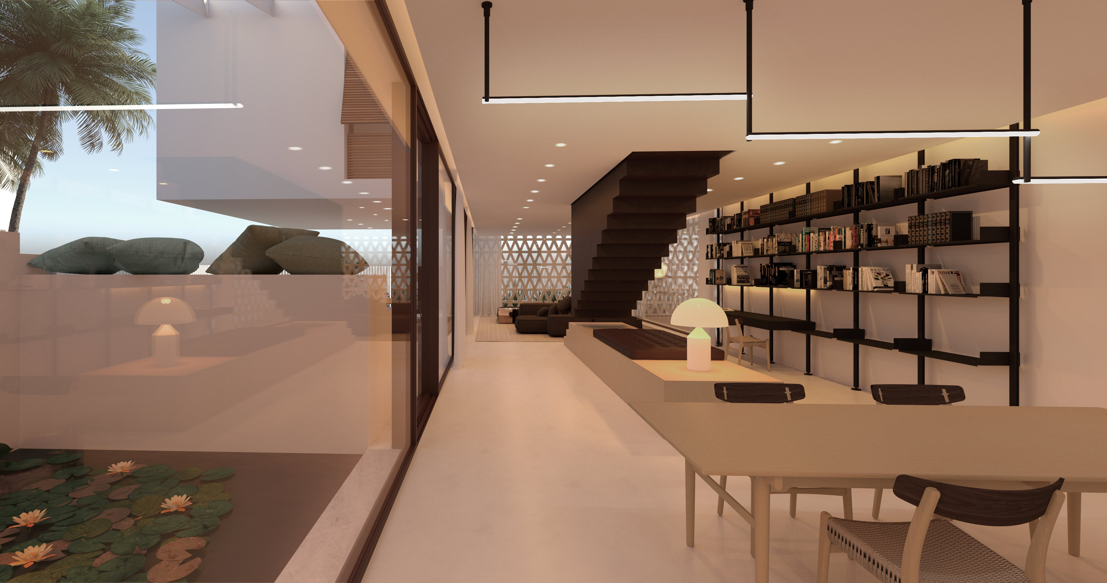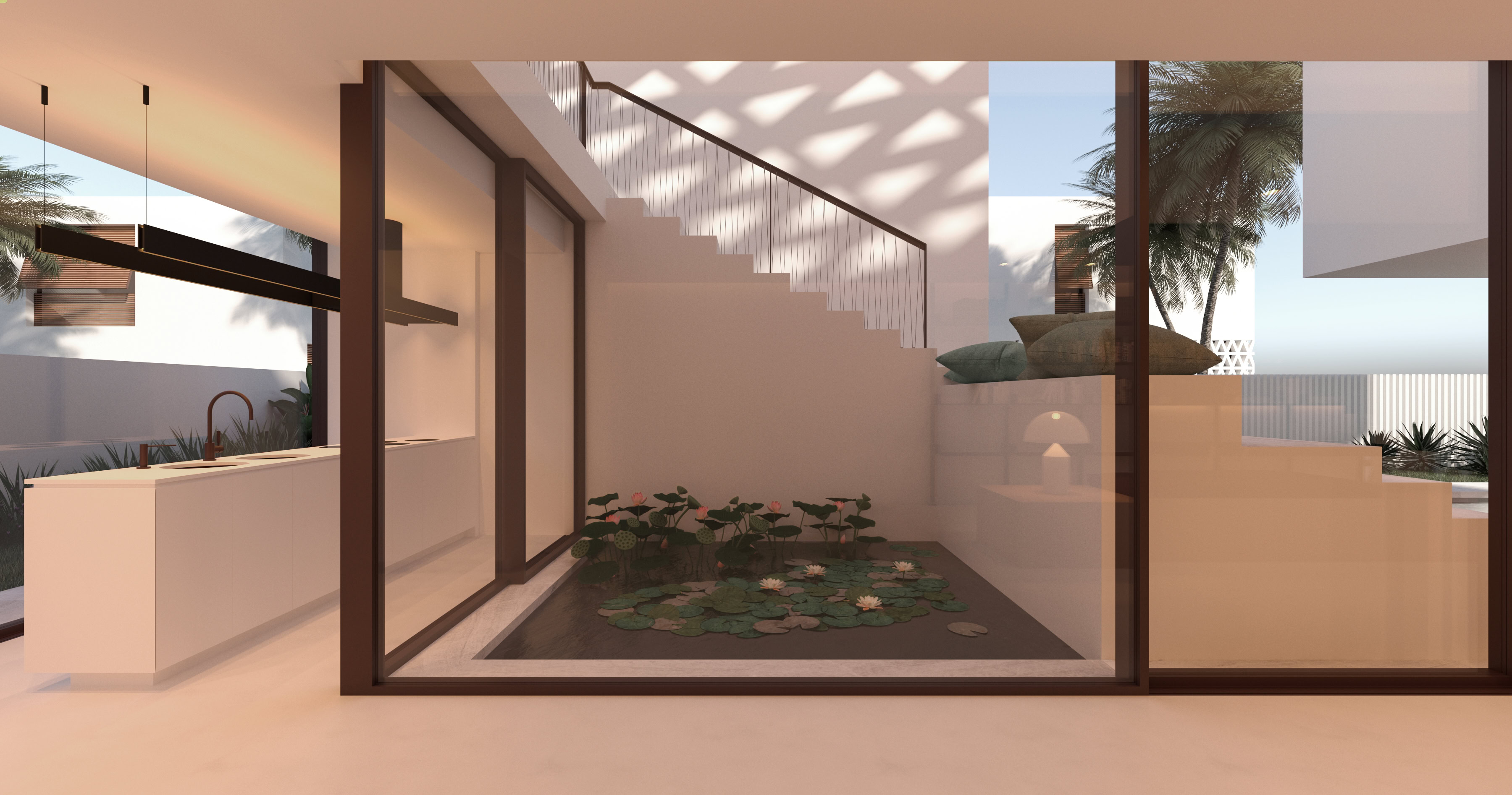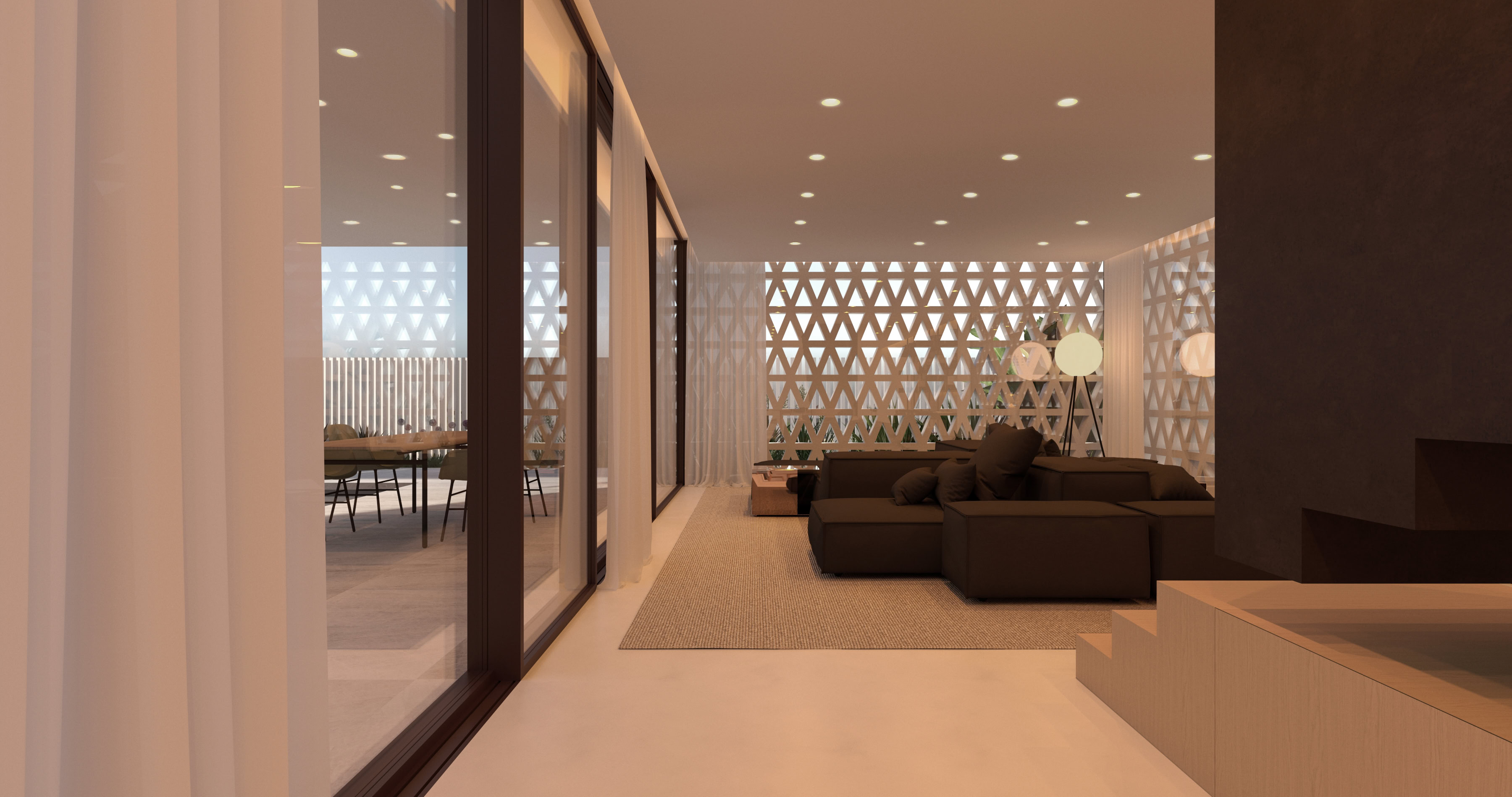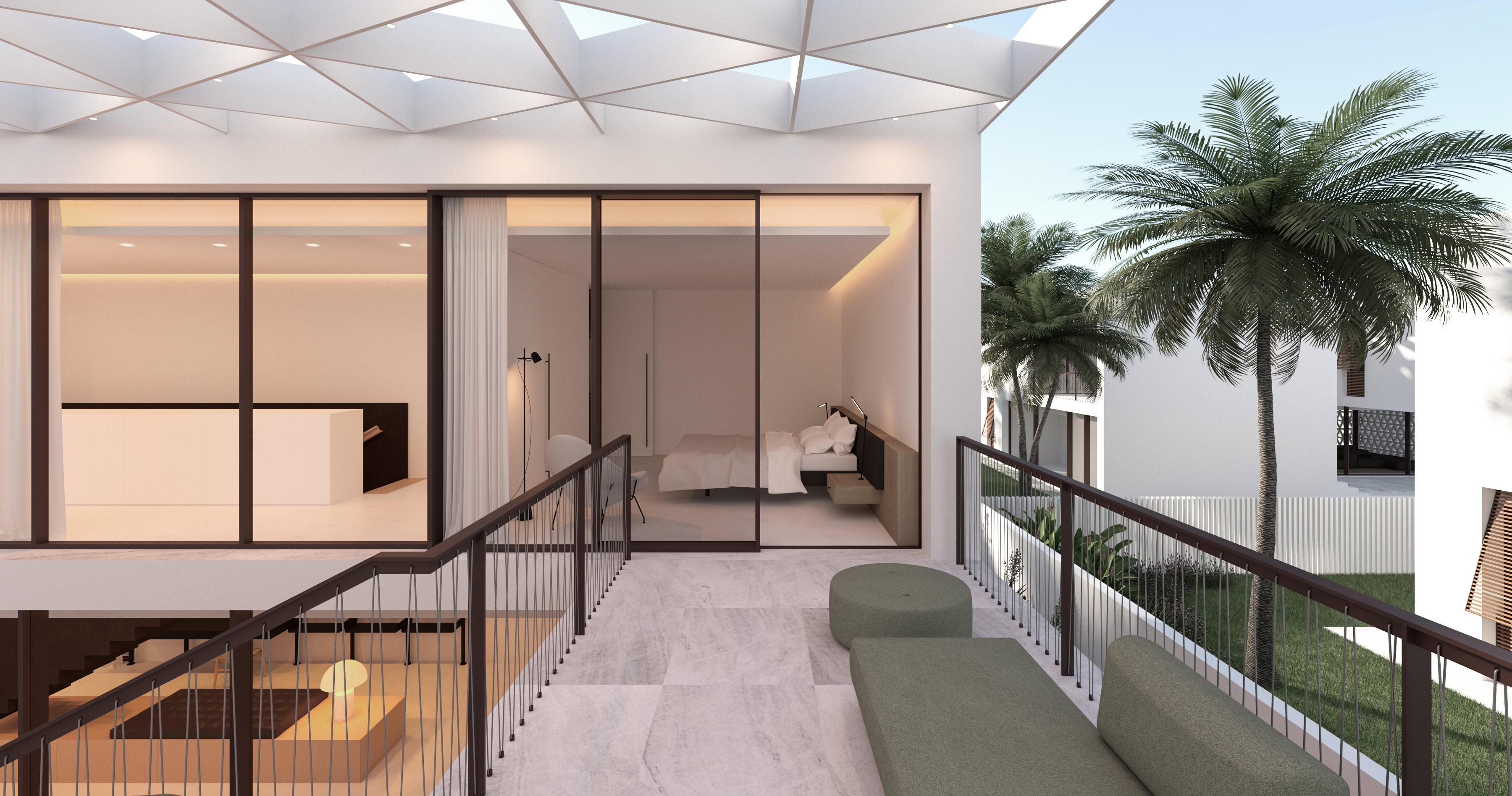 Il progetto soddisfa le esigenze funzionali predeterminate e reinterpreta in chiave contemporanea la filosofia abitativa del Medio Oriente. Allo stesso tempo tiene conto della necessità di ridurre l’apporto solare, senza rinunciare all’illuminazione naturale interna.