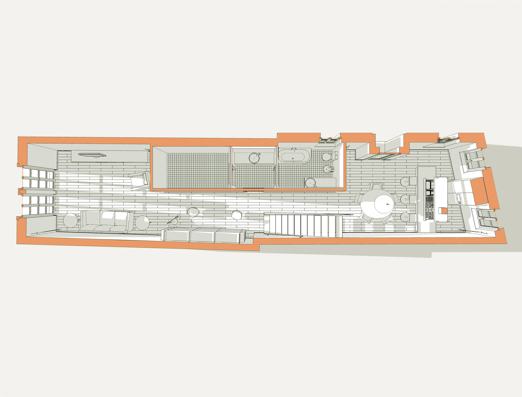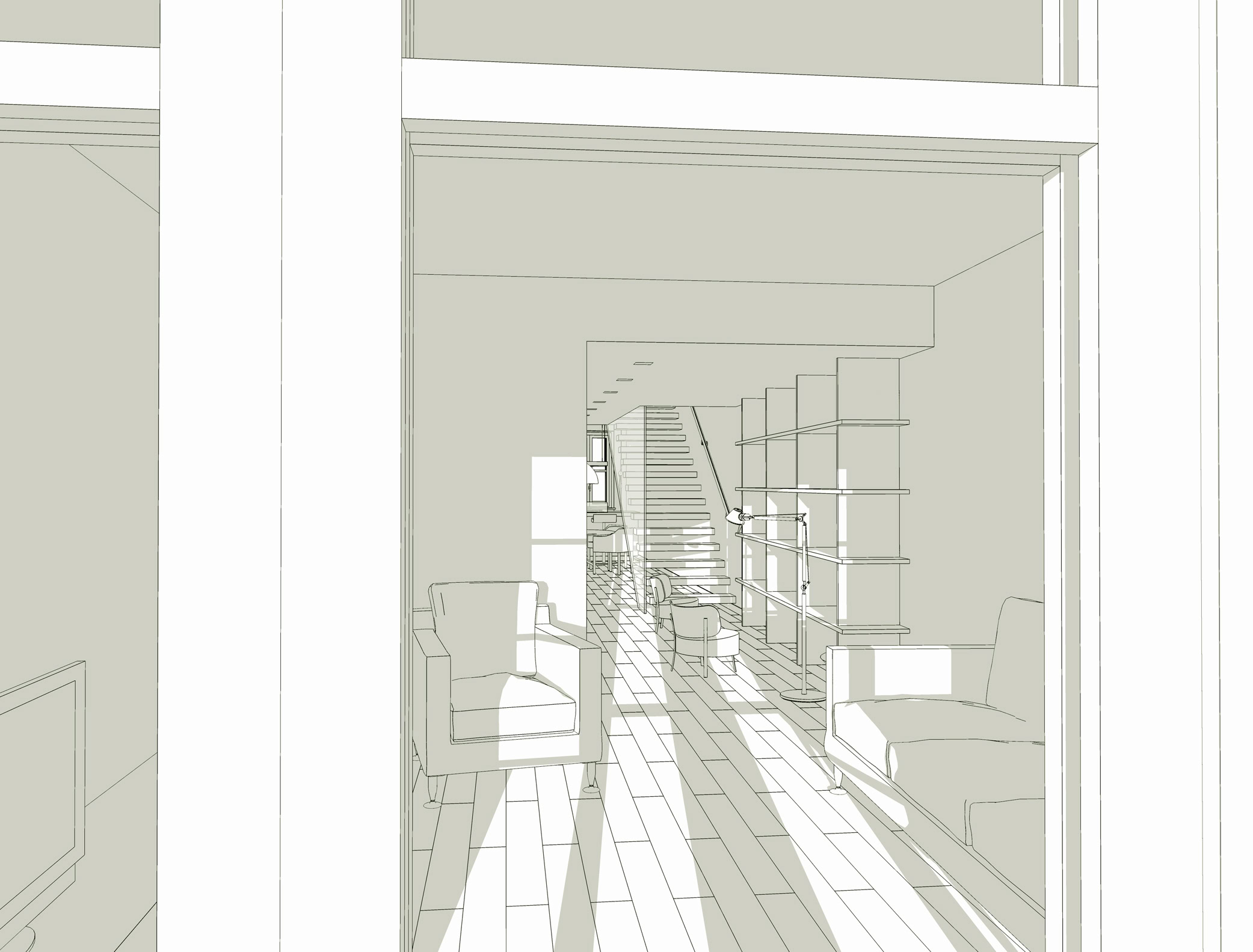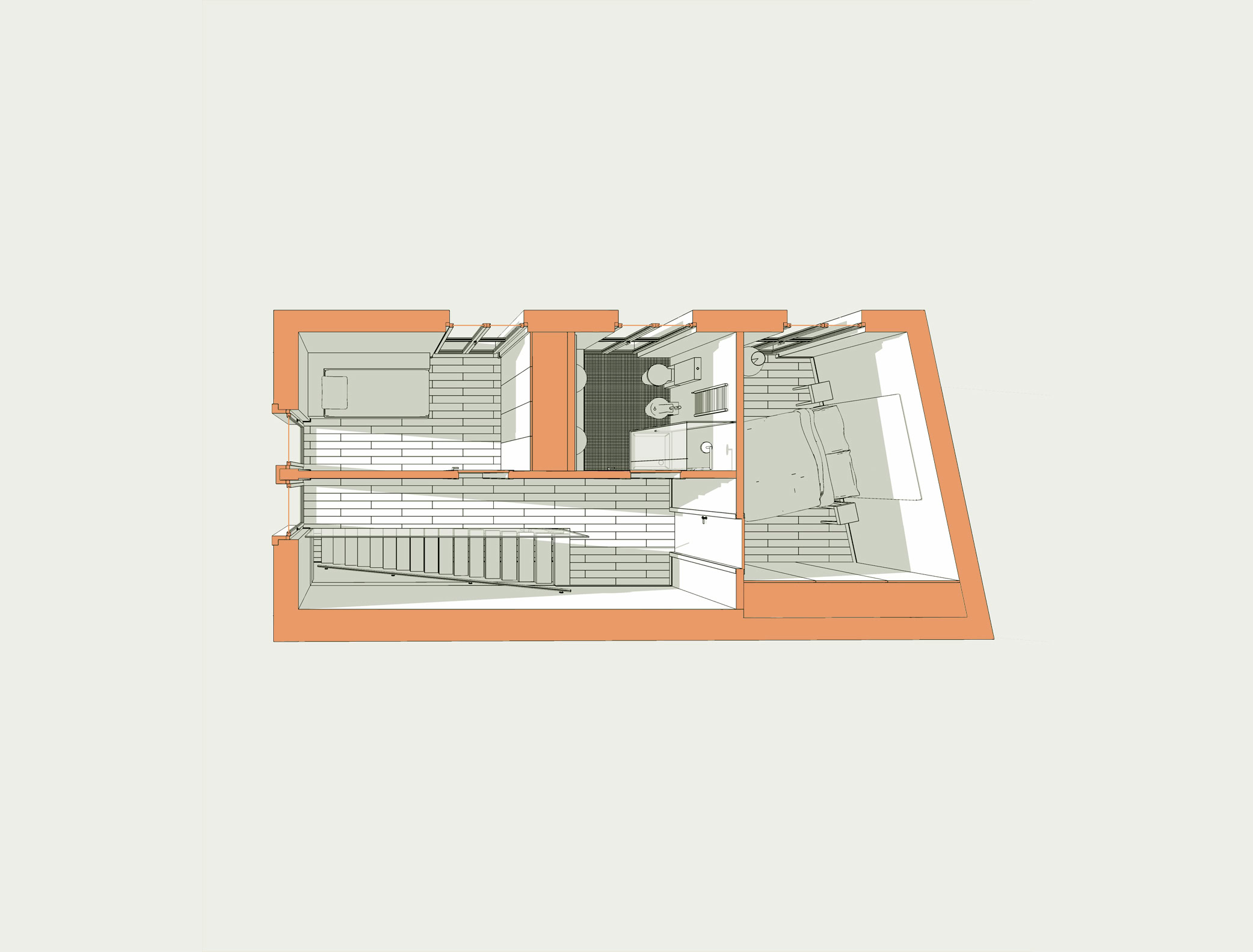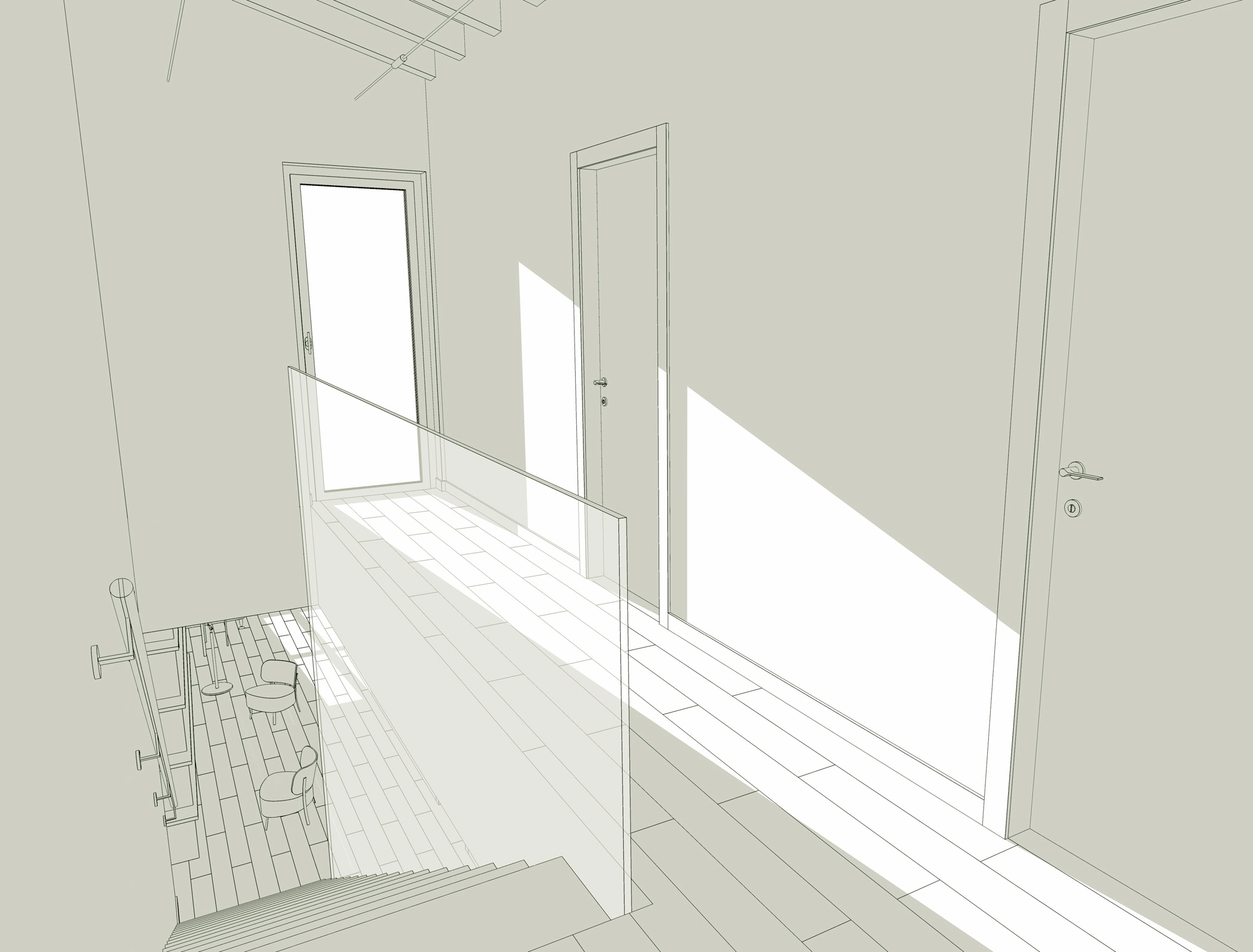 Nell’ambito di un più vasto progetto di riqualificazione urbana, è stato possibile recuperare il sottotetto di un edificio a destinazione commerciale, ricavandone così un’abitazione su due piani.