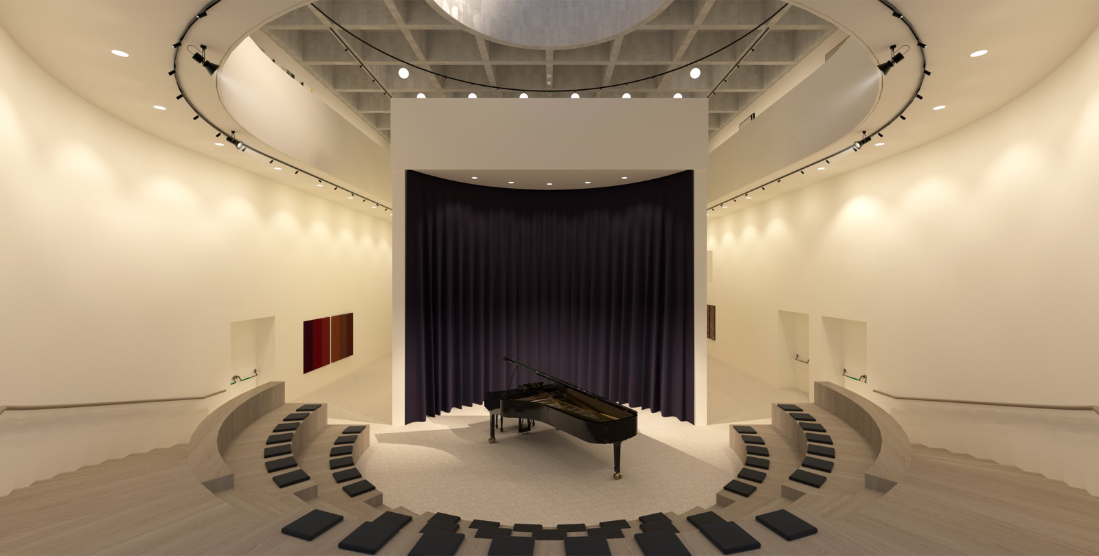 Si prevede un sistema di illuminazione articolato e sofisticato, basato su corpi luminosi di tipologia e applicazione diversificate, dotati di sorgenti e ottiche differenziate. Tale soluzione consente di modulare la regia luminosa secondo le più elevate esigenze funzionali e scenografiche, restituendo agli ambienti interni una qualità percettiva controllata e calibrata, in grado di valorizzare la spazialità e l’articolazione volumetrica dell’organismo architettonico.