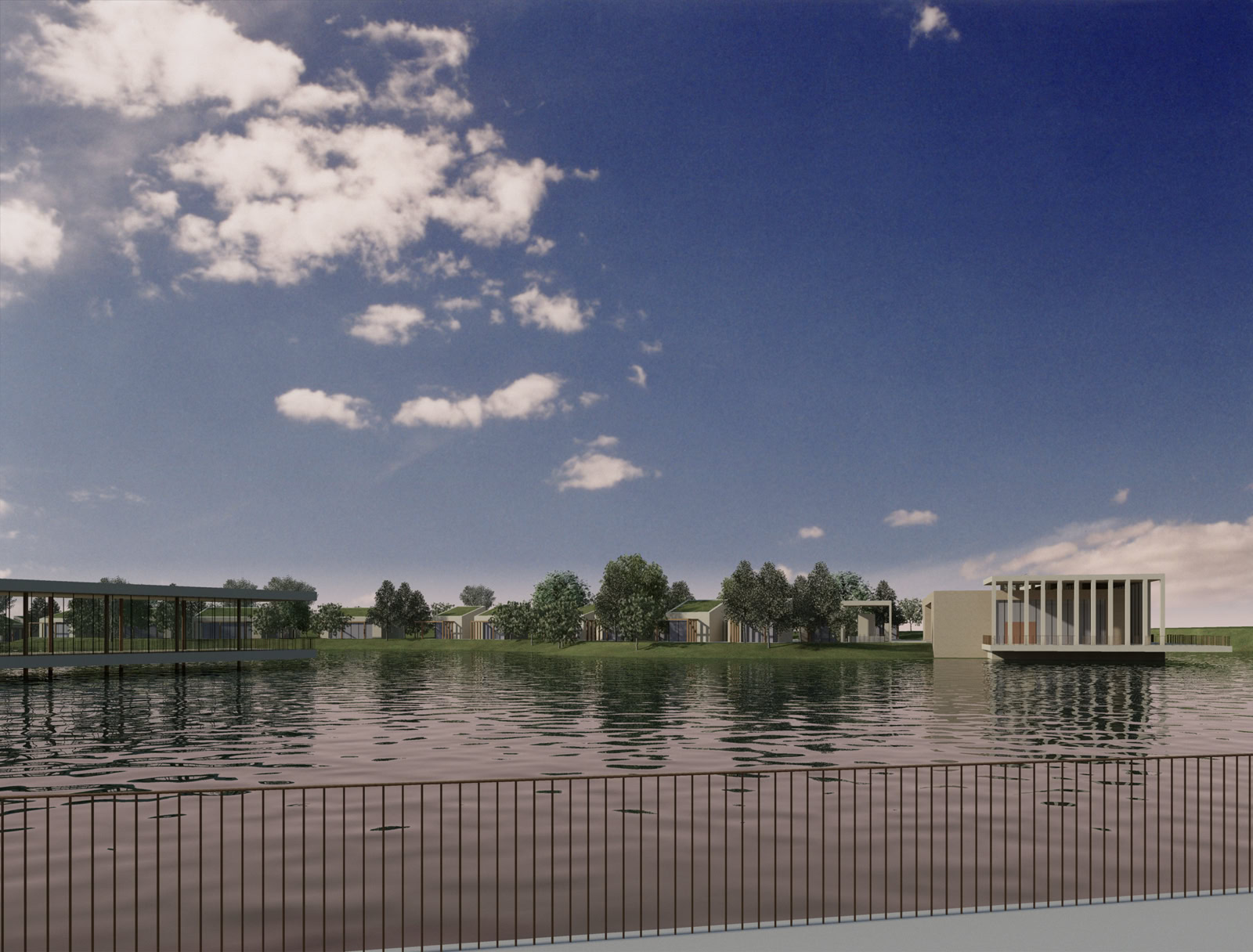 Lo studio progettuale presta attenzione sia agli aspetti ecologico-strutturali del paesaggio, sia agli aspetti della citazione e del disegno degli spazi e dei luoghi tipici. Infatti, all’interno del progetto sono mantenuti: l’attuale specchio d’acqua con i suoi fossi di affluenza, il canneto, il bosco dove possibile, le vene d’acqua sotterranee, le presenze arboree isolate dove possibile e le connessioni. Laddove questi elementi vengono ridimensionati, se ne prevede una compensazione, con la finalità di un riequipaggiamento complessivo dei luoghi. Ciò fornisce sostanza al progetto degli spazi aperti in cui gli edifici vengono a collocarsi.