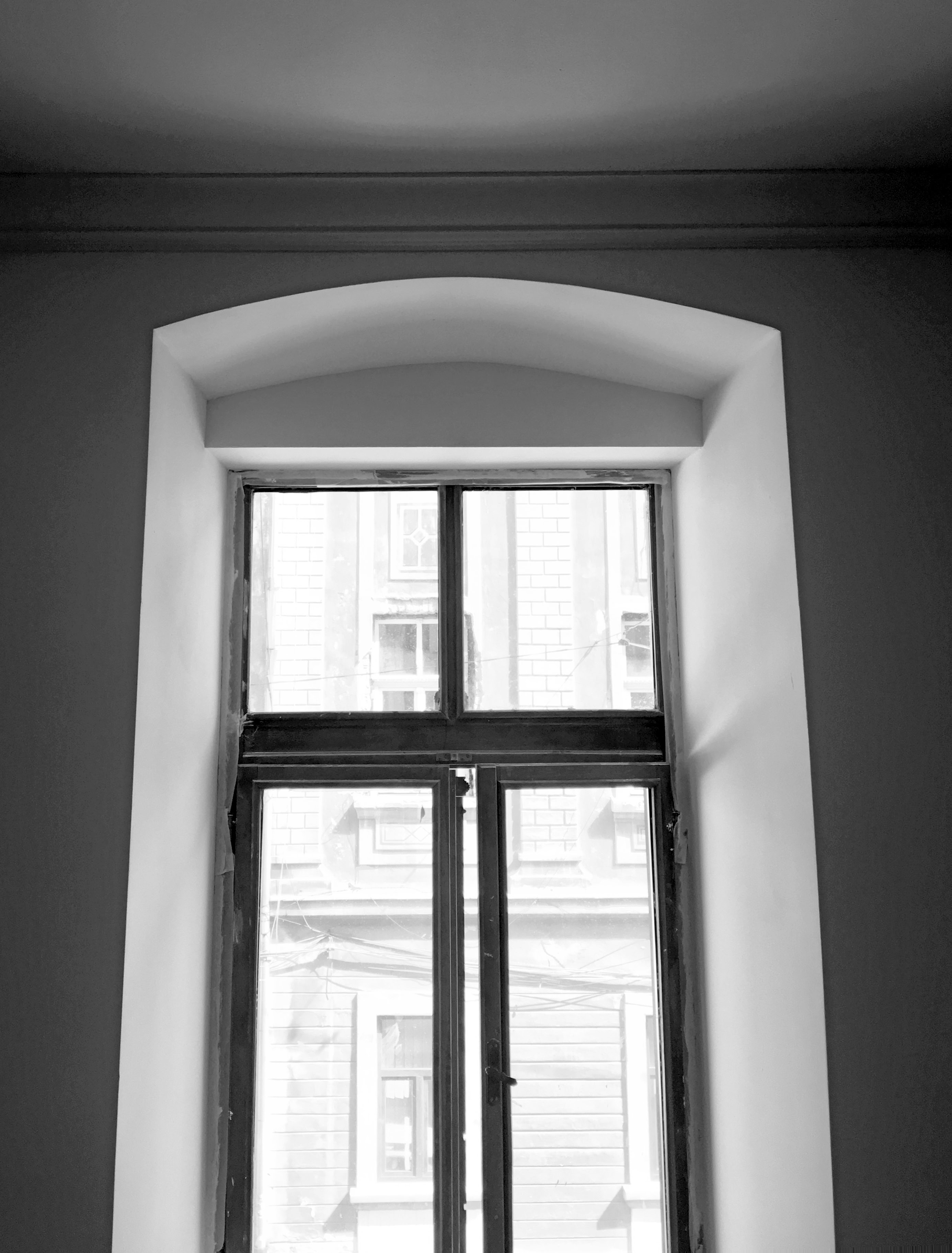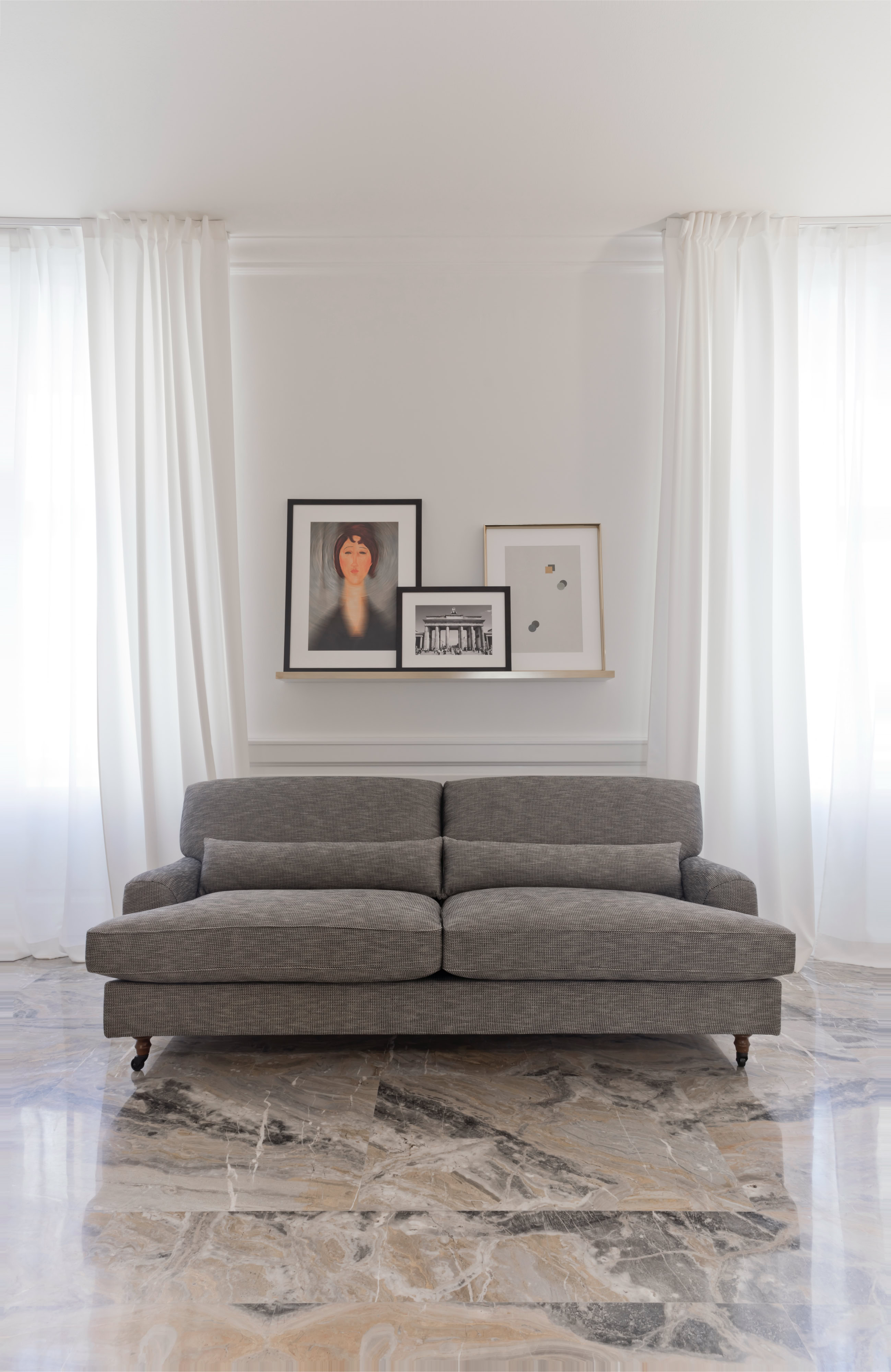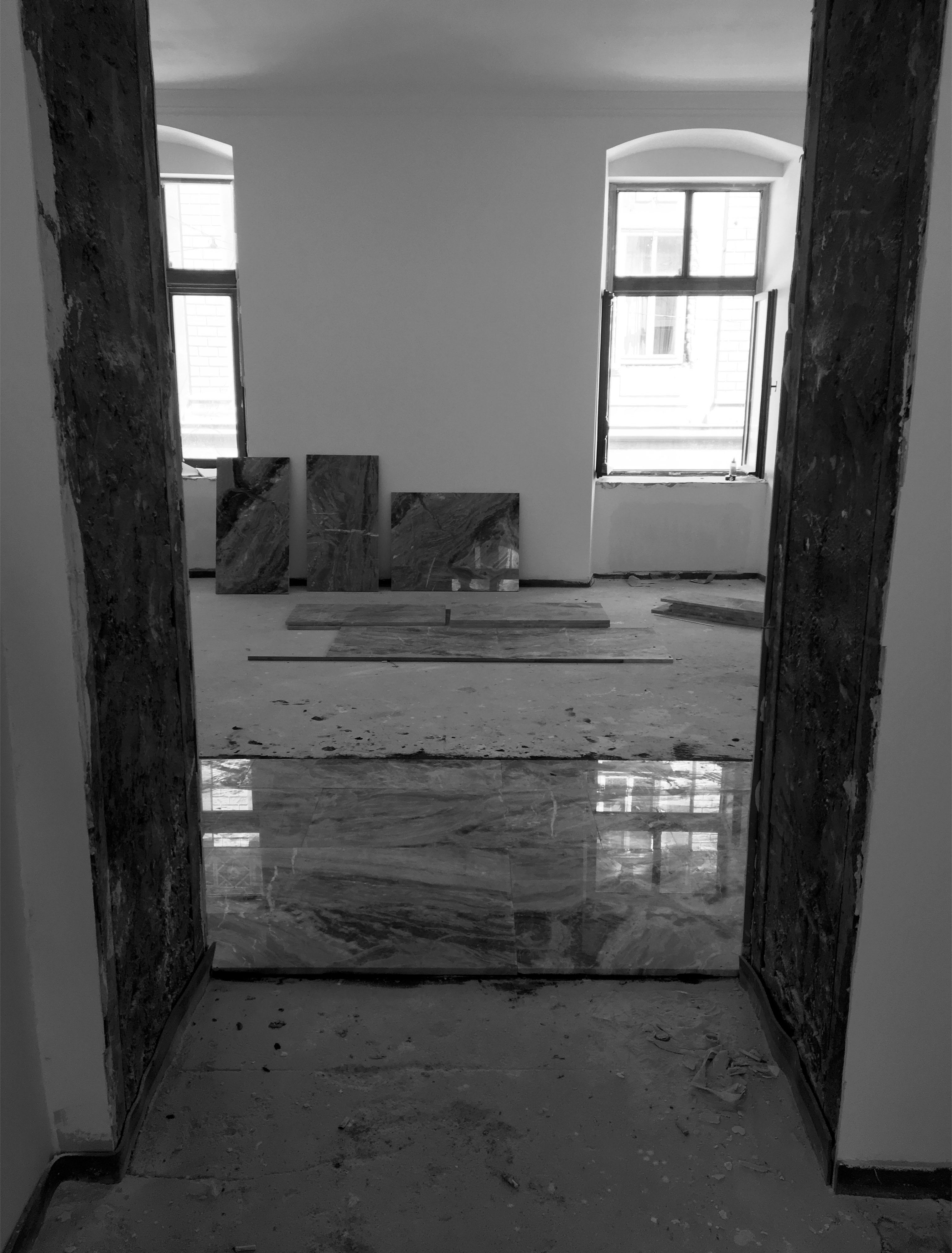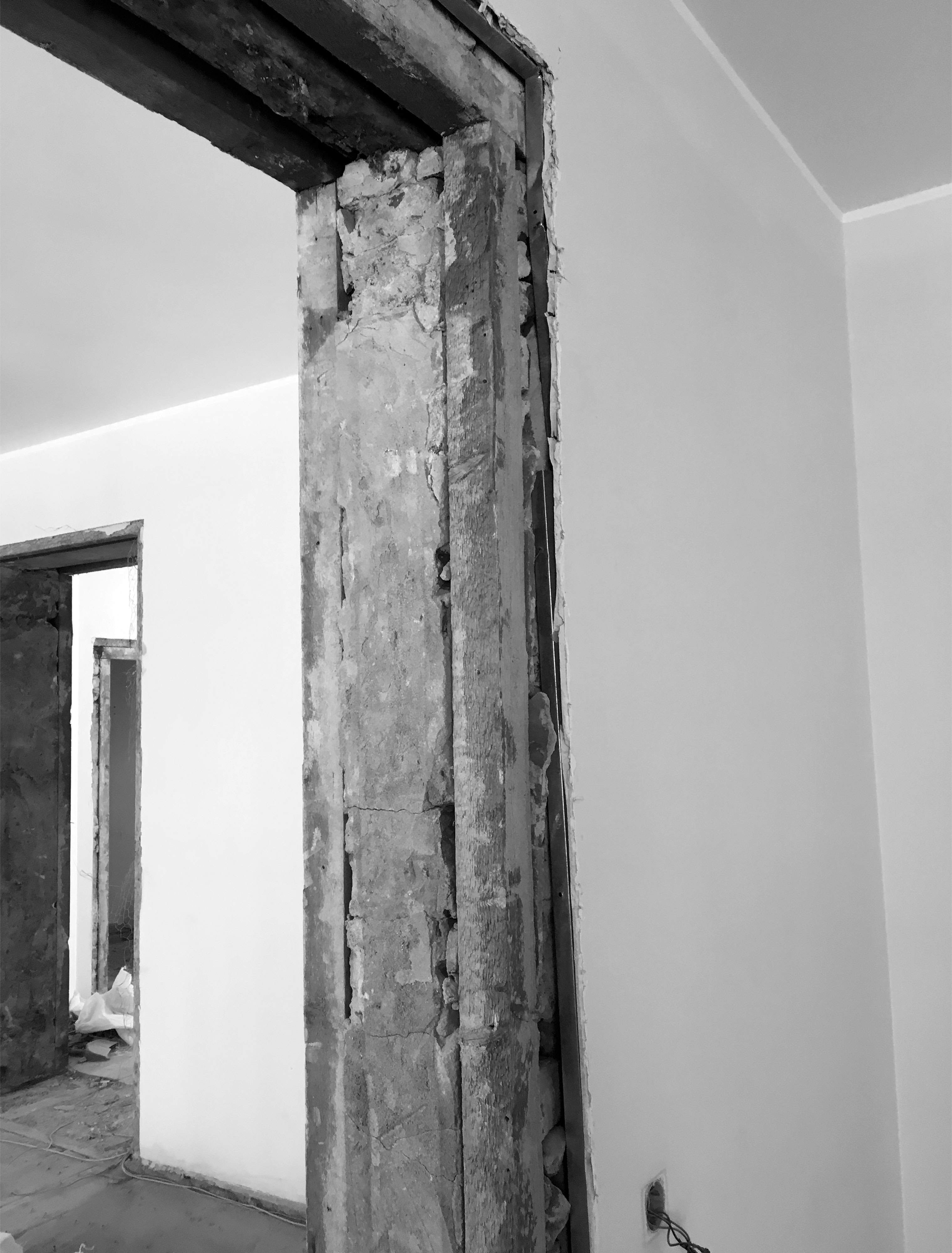 Un recupero dell’involucro edilizio, caratterizzato da grandi stanze bianche e alti soffitti con cornici, attraverso il rinnovo delle superfici ed il restauro dei serramenti originali.