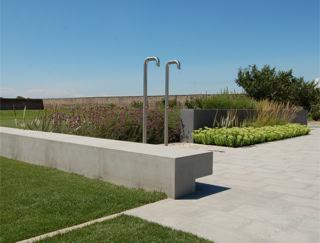 The green area’s project takes advantage of luxuriant shapes and colours of perennial herbaceous plants which contrast with the definite shape of stones and grey shades.