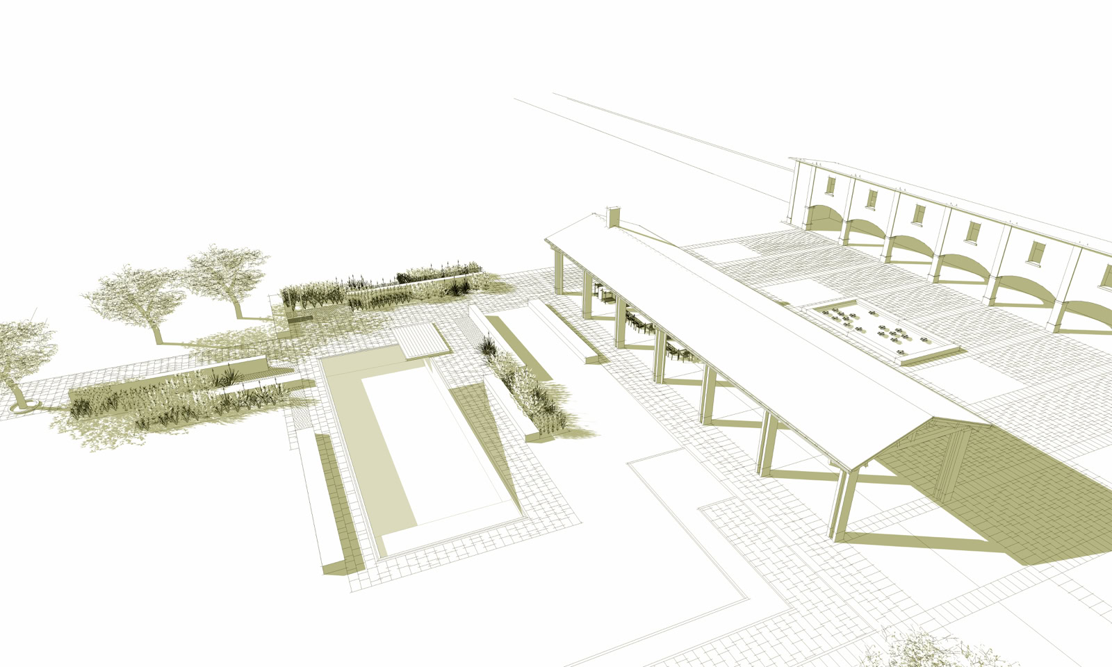 This project comes from the desire of the property owners to redevelop the portion of area situated north of the buildings which were designed in order to be a family residence and which belong to the country.