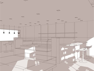 Lighting is integrated into the false ceiling and provided by rational and minimalist lights. Along the circulation paths and the edges of the spaces indirect lighting is provided, with cuts of light delimiting a wall or a space. In the gourmerie spotlights are distributed tactically while in the restaurant hall the lighting elements are track mounted, allowing optimal flexibility for the demanding lighting orchestration.