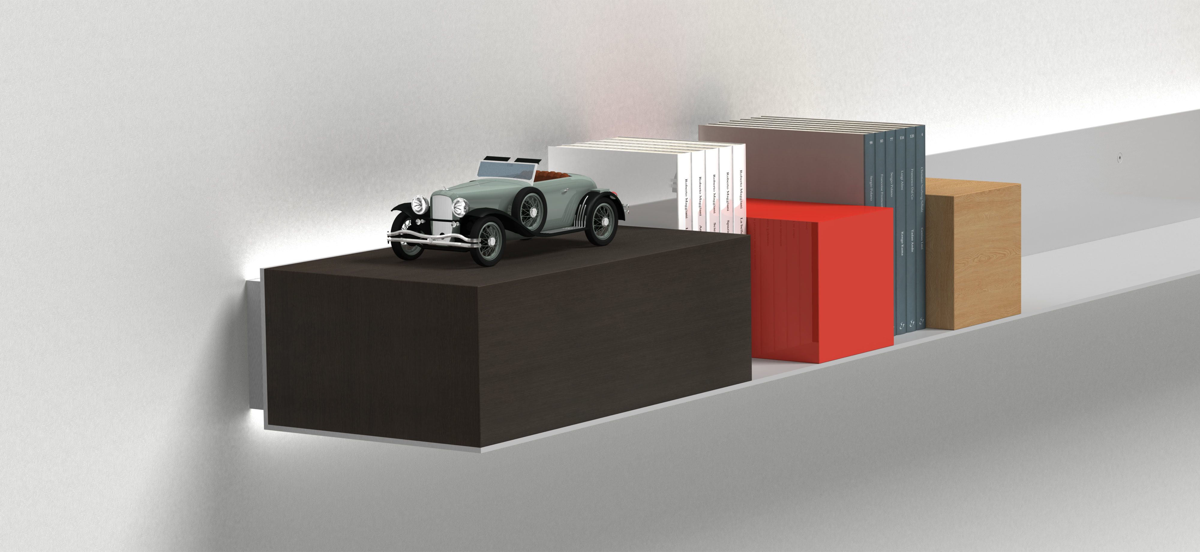 Thanks to light, Elle appears to be lightweight and ethereal. The double indirect illumination “detaches” the shelf from the wall and it makes it fluctuate. Emotionality joins functionality.