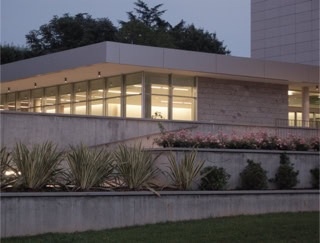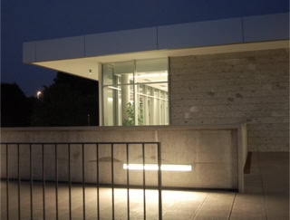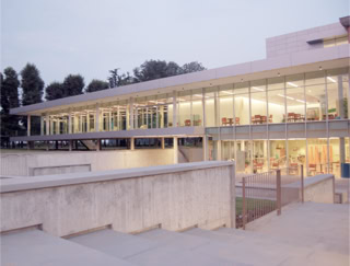 The height difference between the street level and the building entrance is resolved on the west frontage with a split-level rock garden. The new piazza on the lower ground level is ample enough to tolerate its lower topography. The play of volumes that defines this space, featuring differential wall heights set out in a precise and rational design constitutes the piazza as the characterising architectonic element.