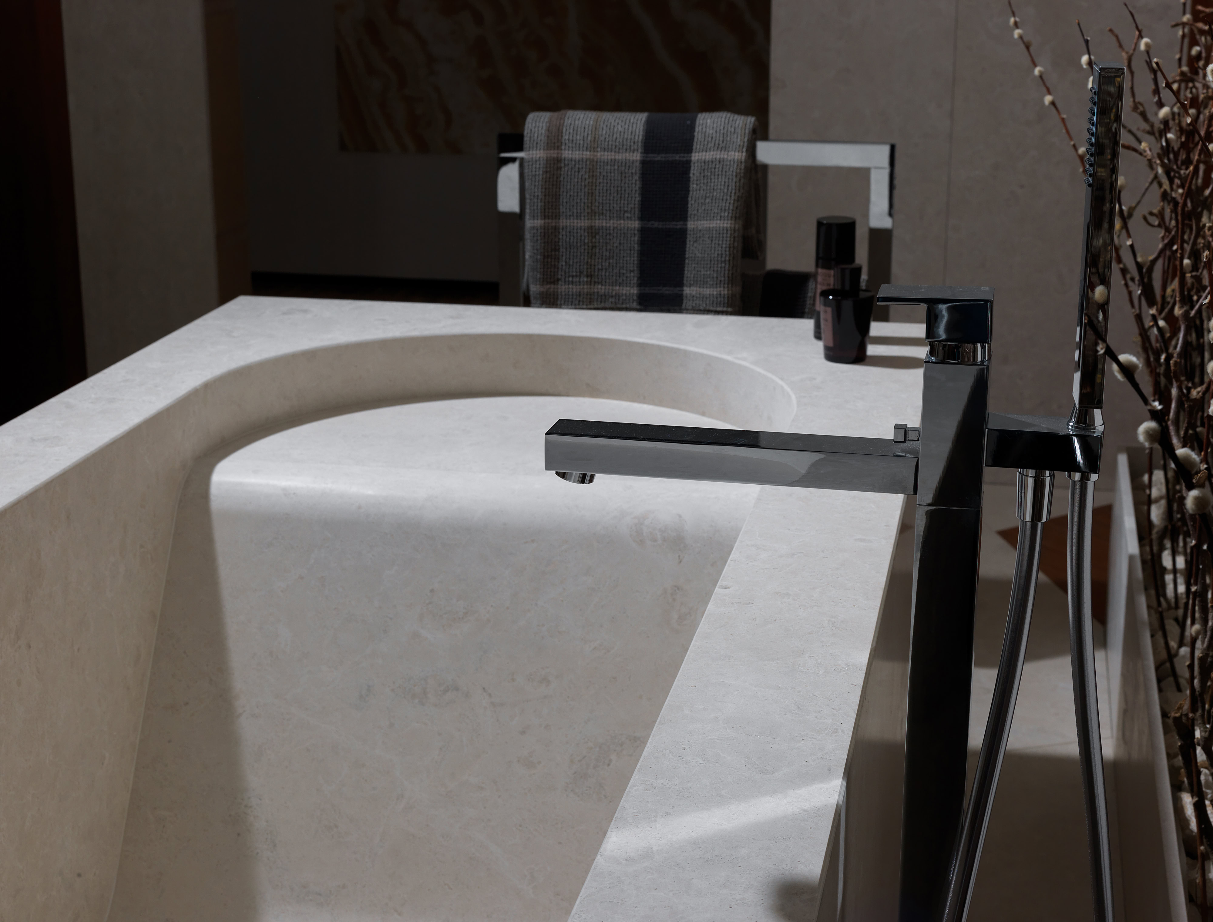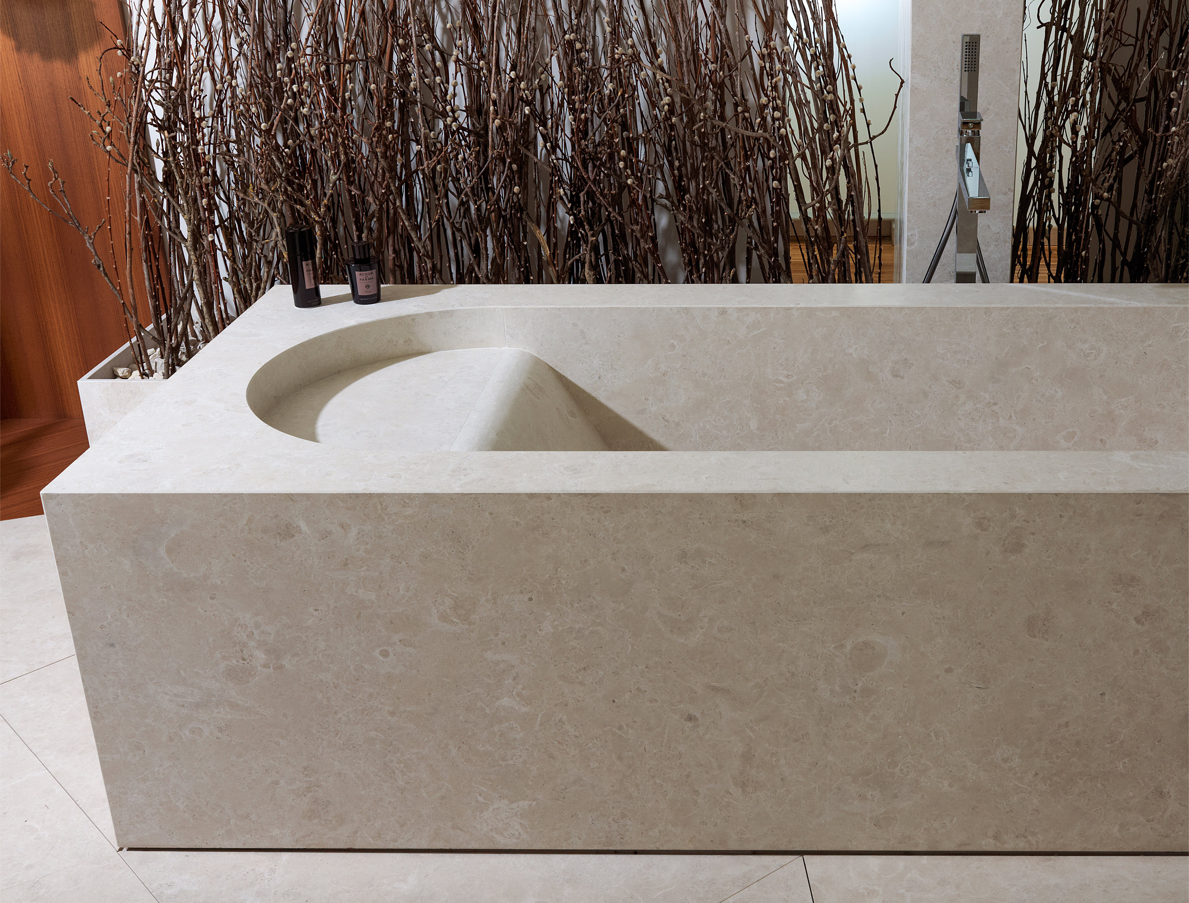 La vasca Fusion è una vasca freestanding dalle forme semplici e pulite. Massiva nelle sue generose dimensioni esterne, si svela incredibilmente comoda e sinuosa al suo interno, per accogliere il nostro corpo con un design ergonomico senza precedenti nelle vasche in pietra.
