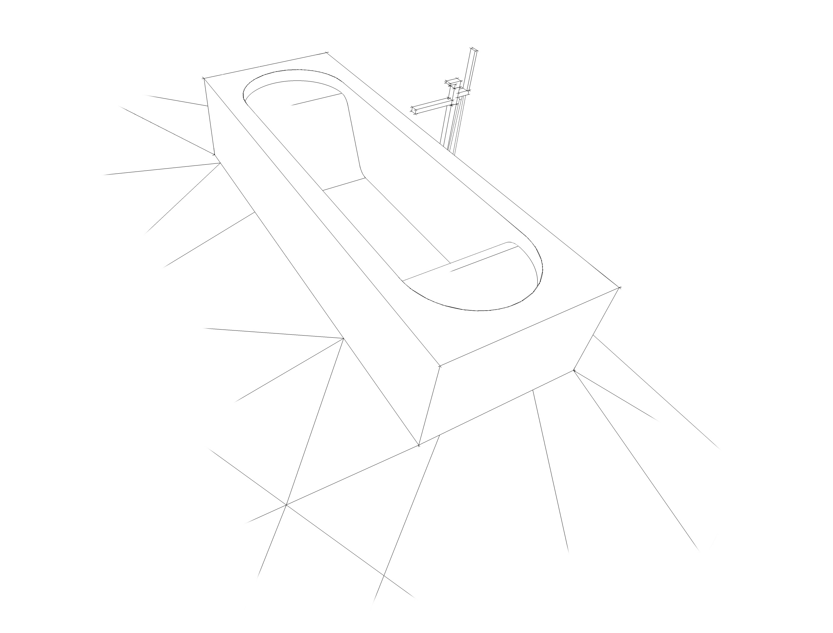 Il progetto prevede un’estensione della vasca, quale seduta o lettino con materassino morbido per il relax, prima e dopo il bagno.
