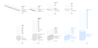La composizione degli elementi strutturali varia al variare dell’altezza dell’edificio, cosicché ogni piano è diverso dagli altri e la modulazione dei vuoti e dei pieni delle facciate che ne consegue dona all’edificio un’identità distintiva straordinaria.