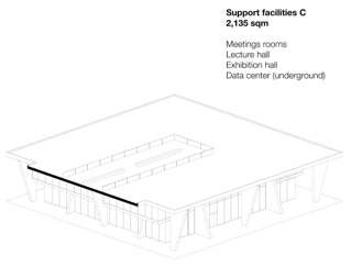 Dal punto di vista morfologico e compositivo la nuova architettura intende instaurare un rapporto dialettico con gli edifici esistenti. Pur rivendicando una propria poetica progettuale, in coerenza con un continuo percorso di ricerca e sperimentazione, l’architettura proposta attinge da un repertorio formale e figurativo, che discerne autonomamente dalla griglia dei caratteri distintivi dell’architettura di Oscar Niemeyer il materiale compositivo per la progettazione dei nuovi edifici.