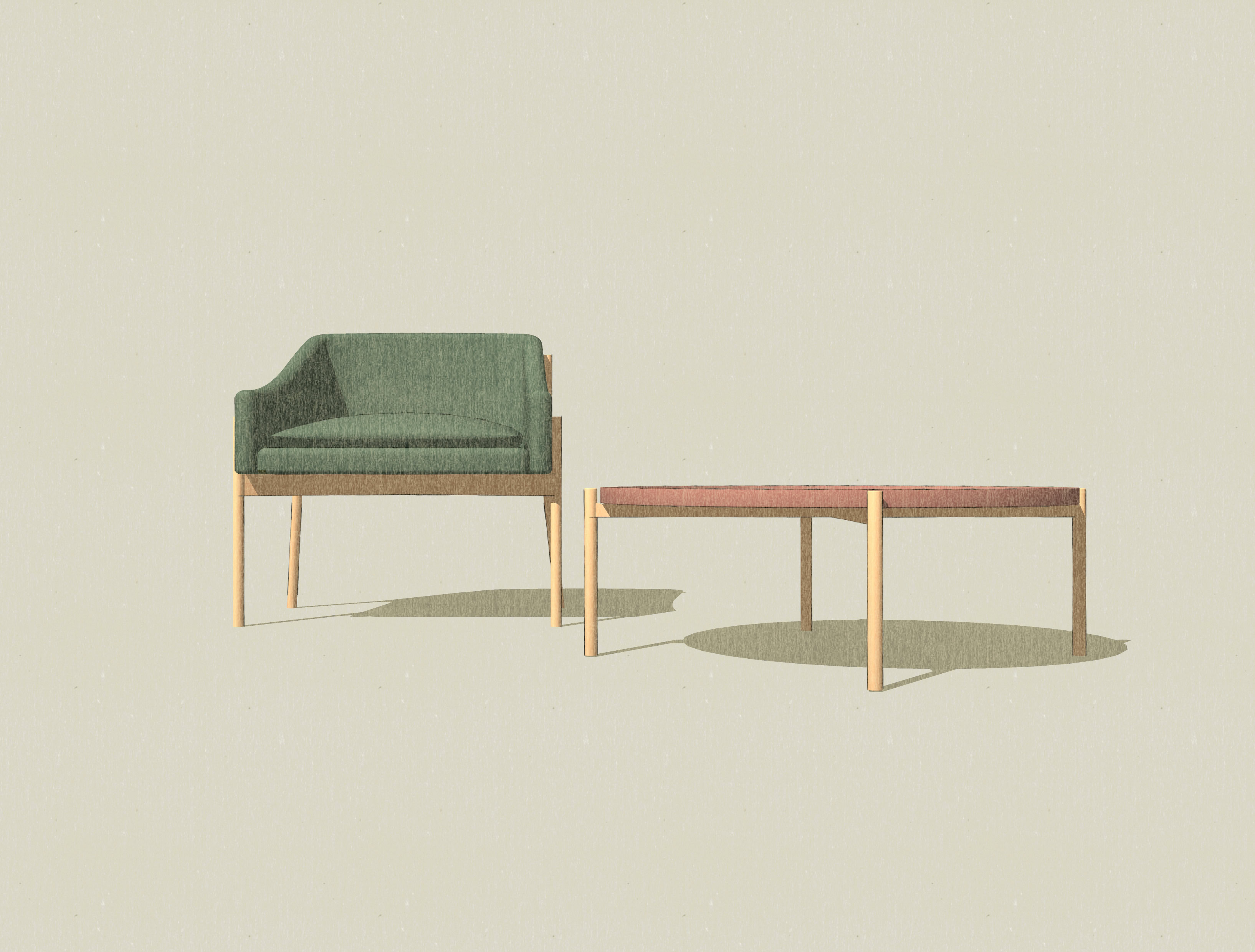 Poltrona con gambe in legno massello di rovere o frassino e scocca in acciaio schiumata in poliestere espanso rivestito in ovatta di poliestere.