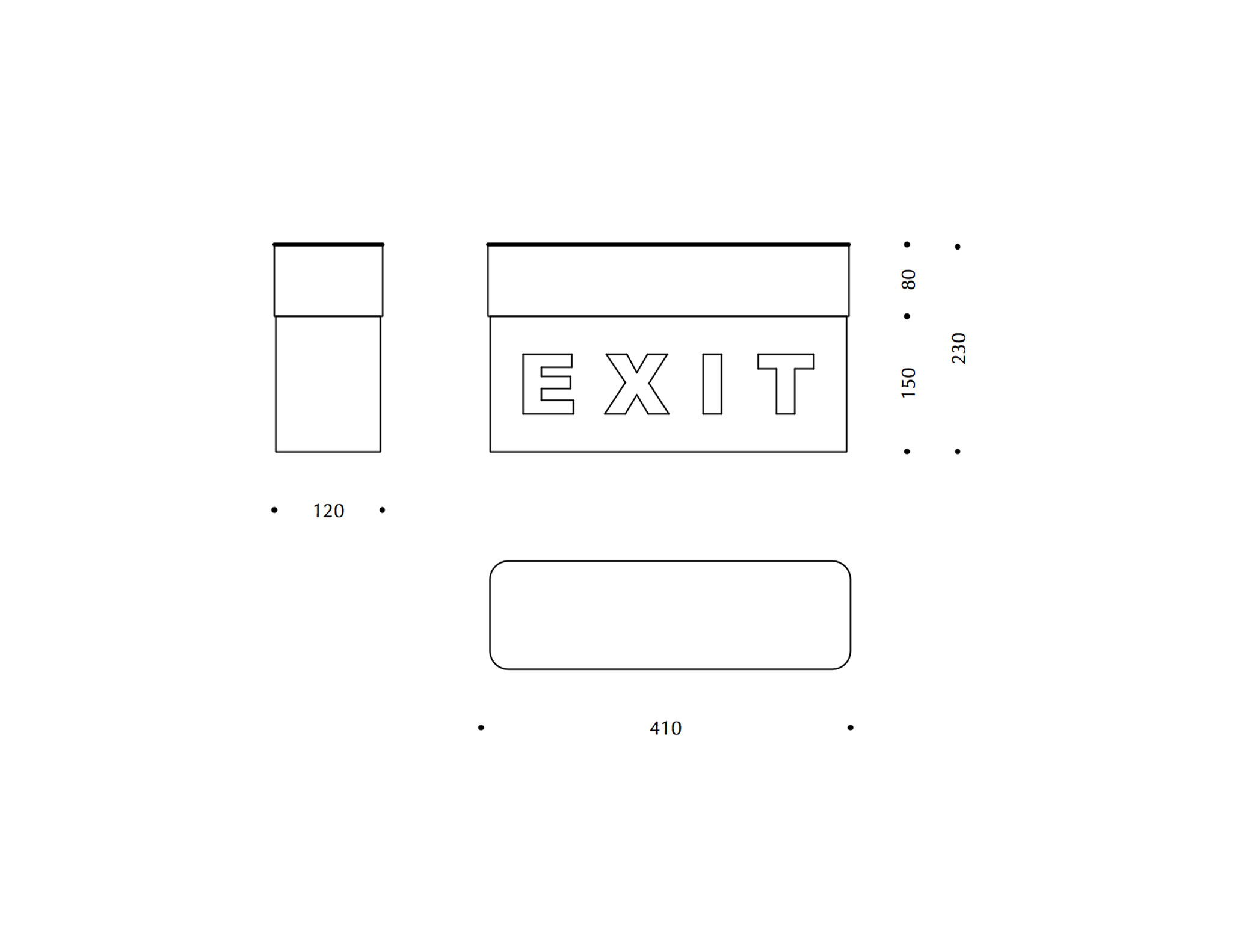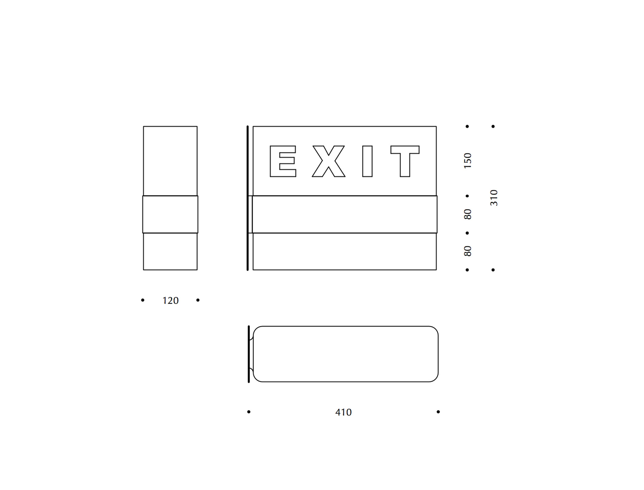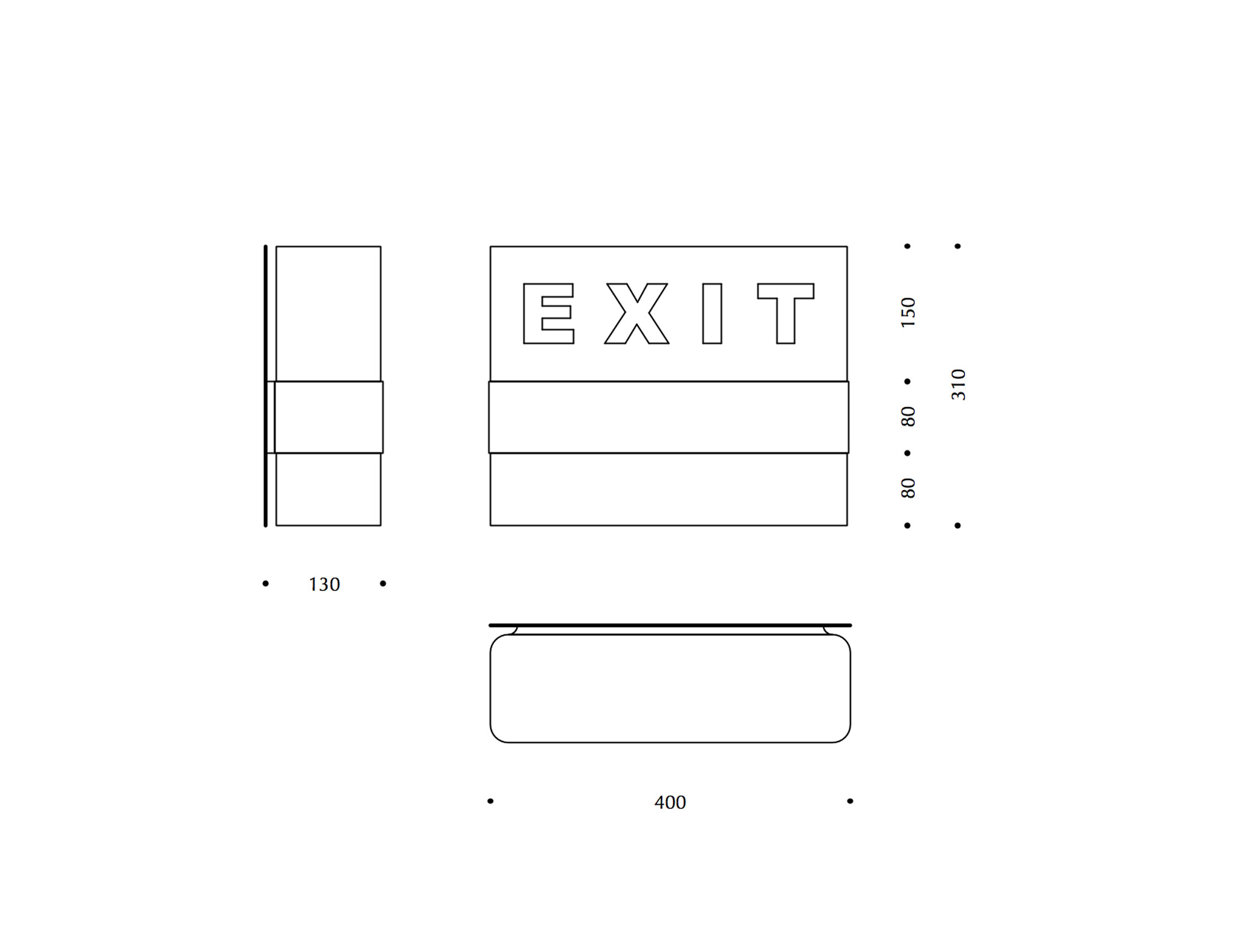 I diffusori inferiore e superiore possono essere prodotti in acrilico o in vetro. Il diffusore inferiore bianco è assicurato al corpo centrale e non è removibile. Il diffusore superiore con colorazione esterna verde o rossa e serigrafia appoggia sulla base a cui è fissato ad incastro. Pittogrammi, simboli e testi possono essere riprodotti su uno o due lati.