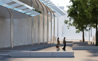 Il progetto propone le stesse suddette modalità per gli spazi antistanti la Stazione nel caso di mantenimento della percorrenza viabilistica a raso.