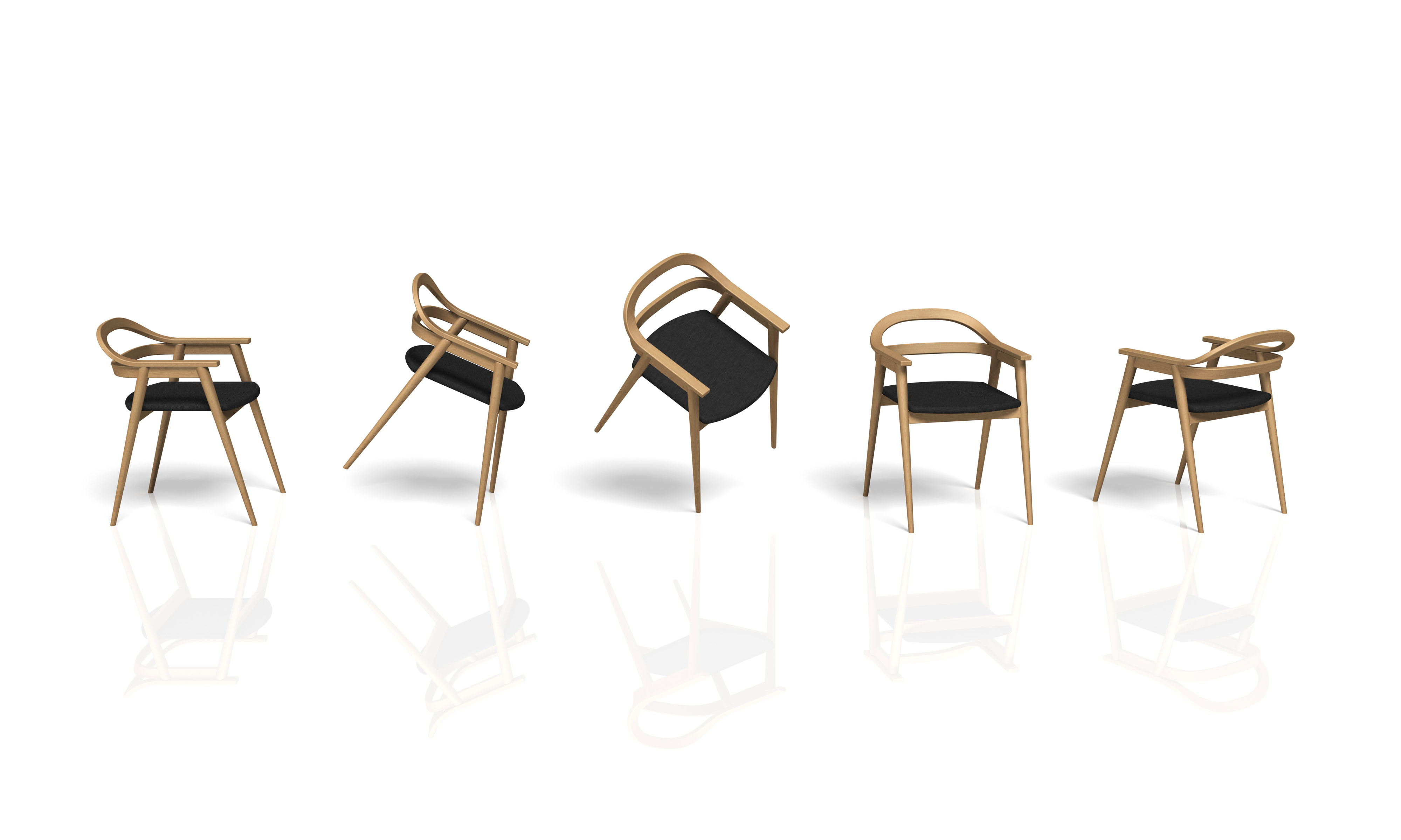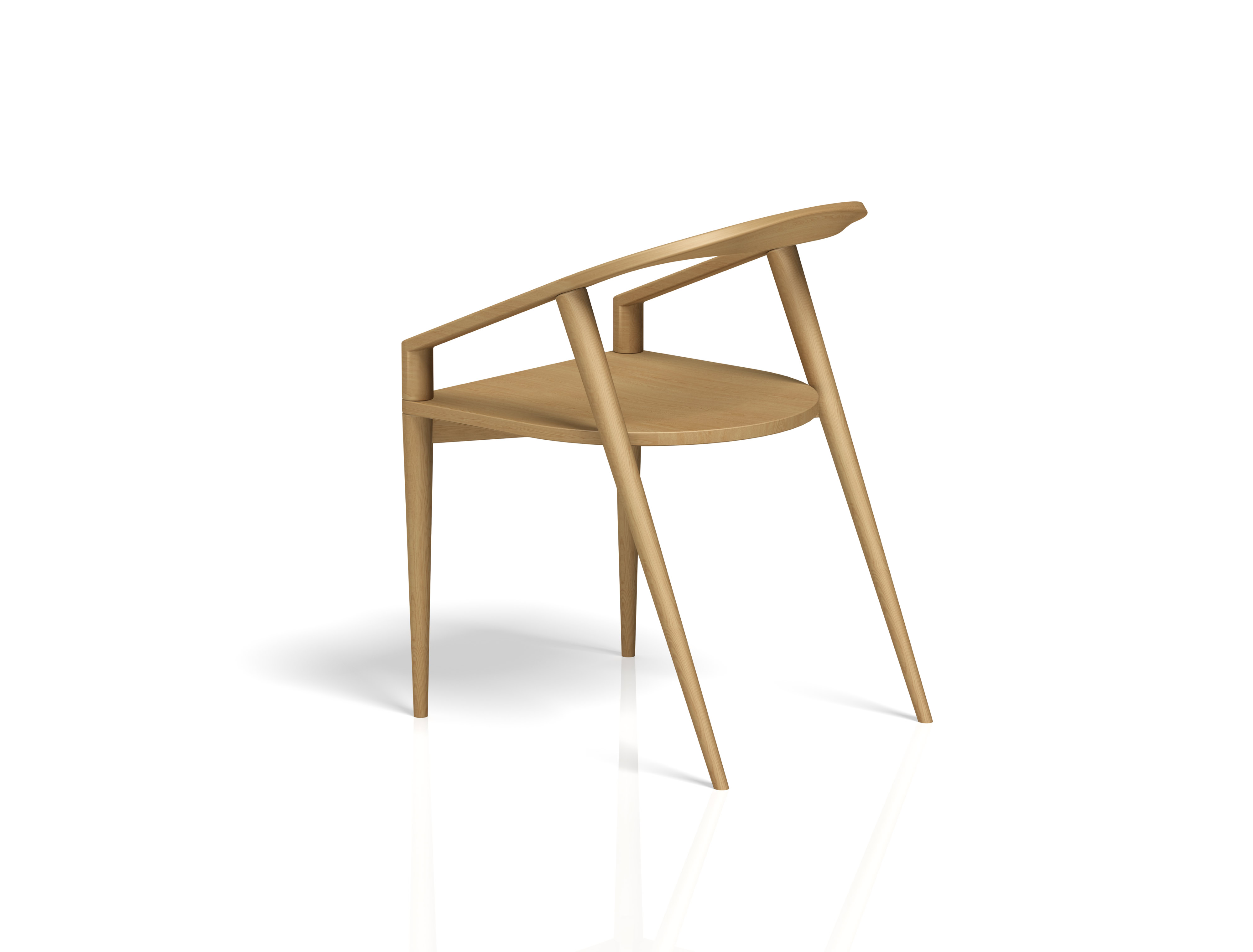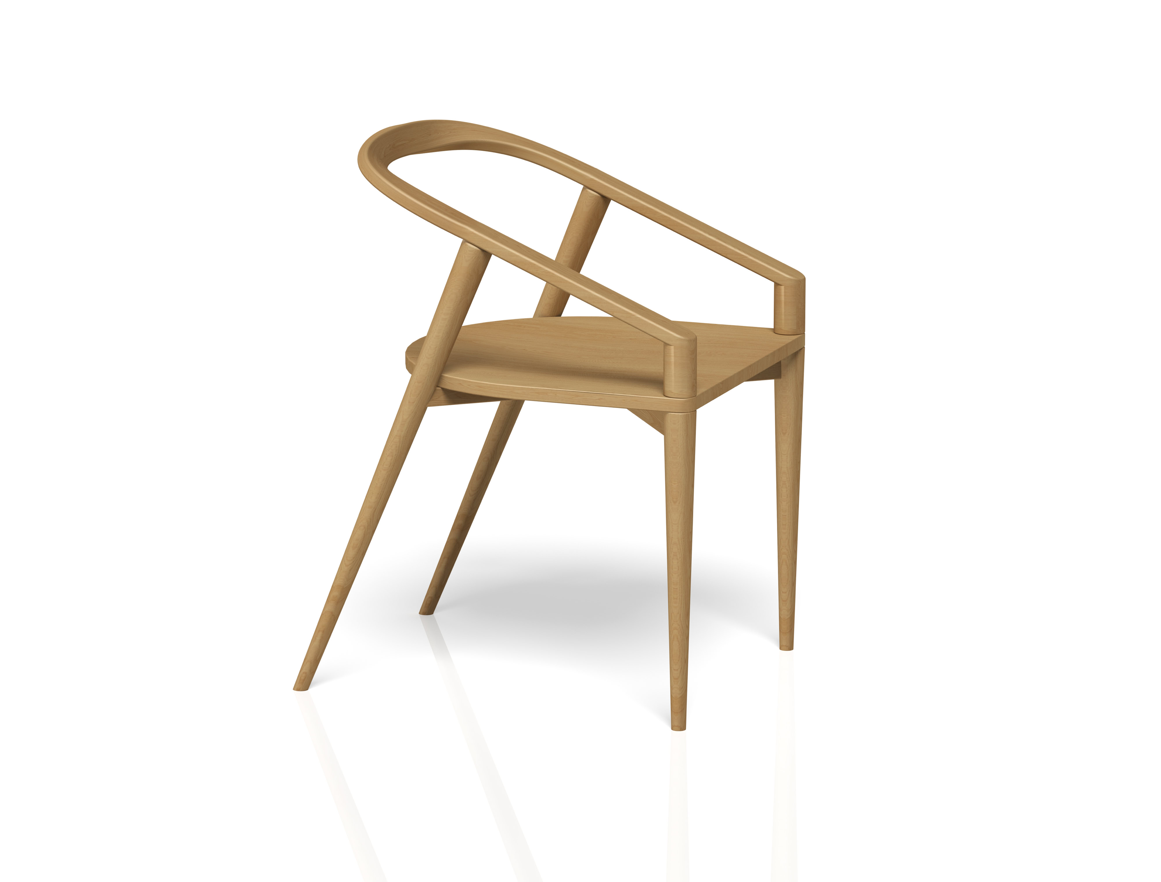 Sedia in legno dalle linee pulite ed essenziali, pensata per diverse contestualizzazioni.