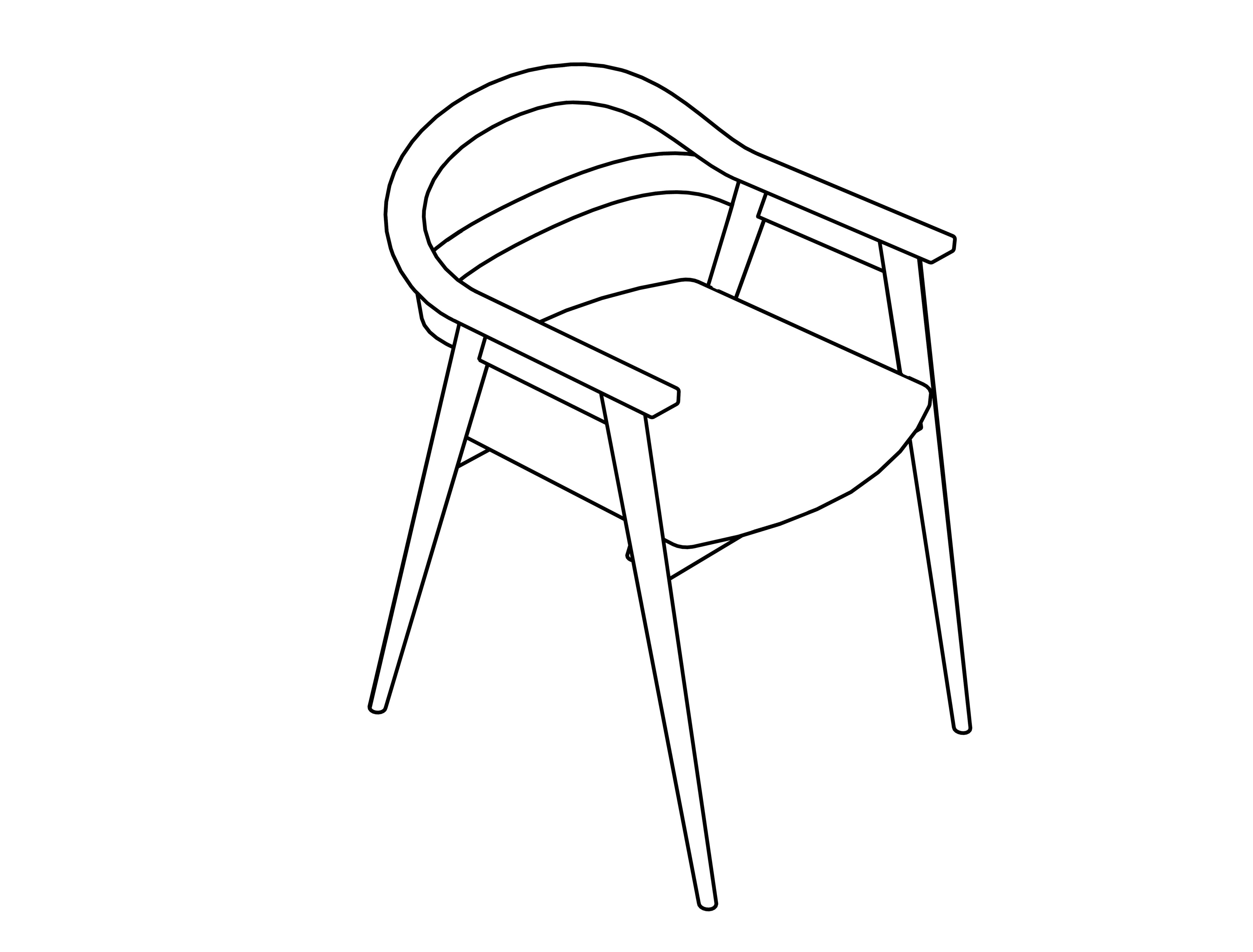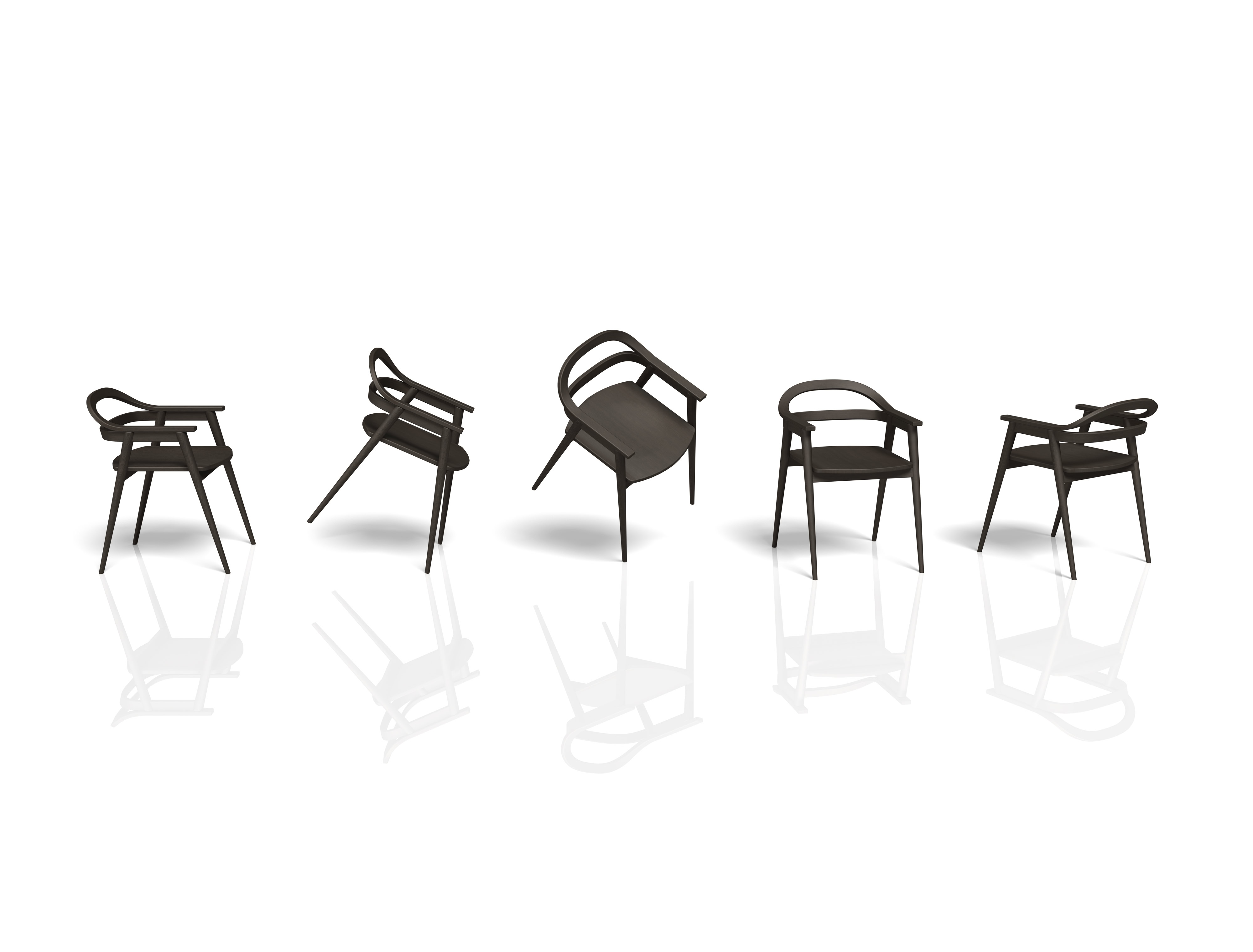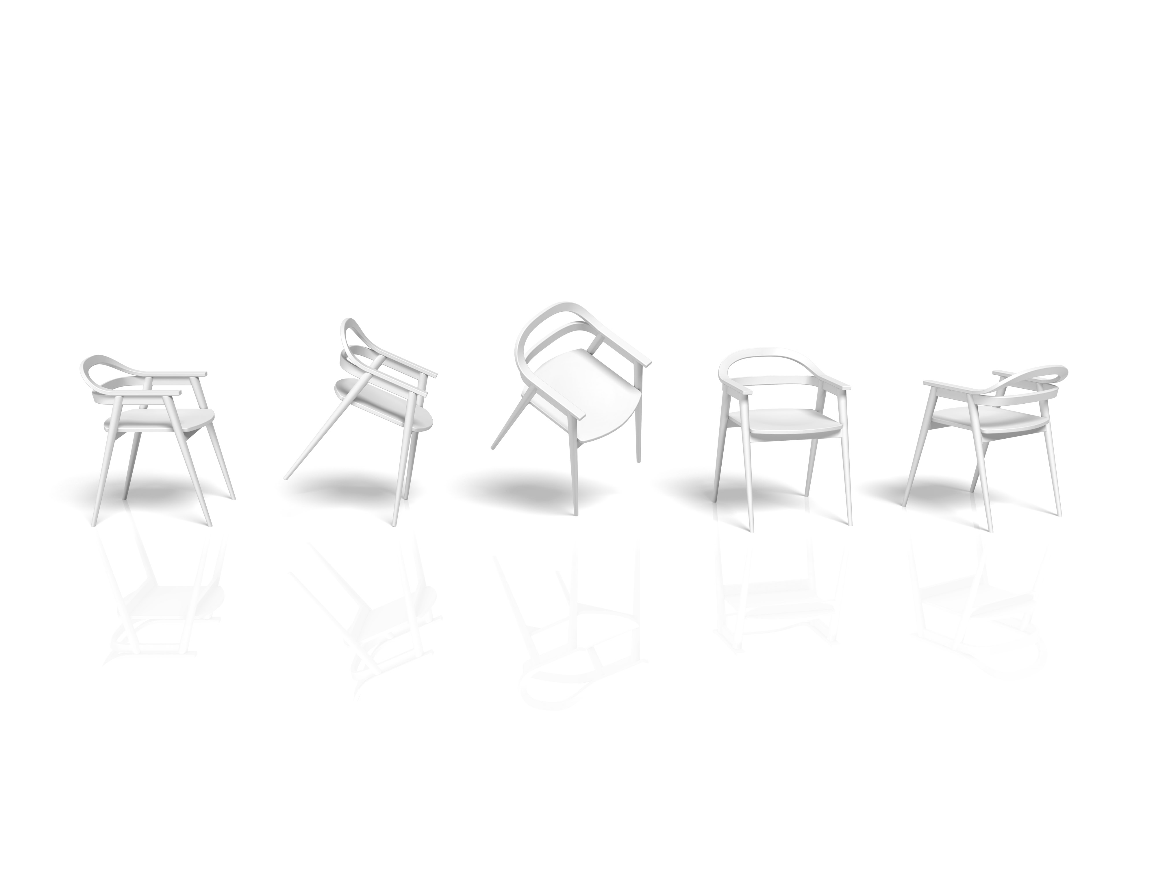 Sedia in legno dalle linee pulite ed essenziali, pensata per diverse contestualizzazioni.