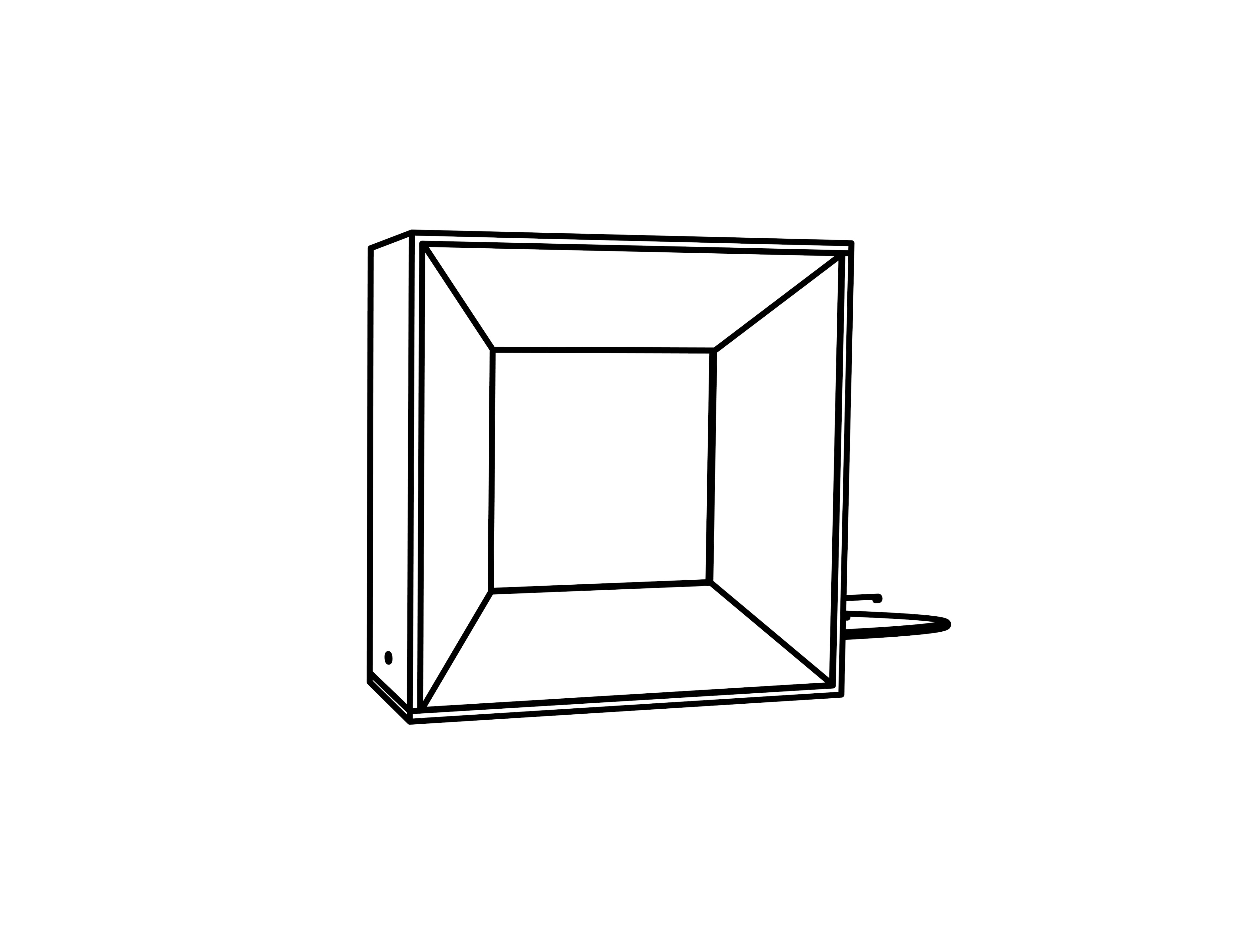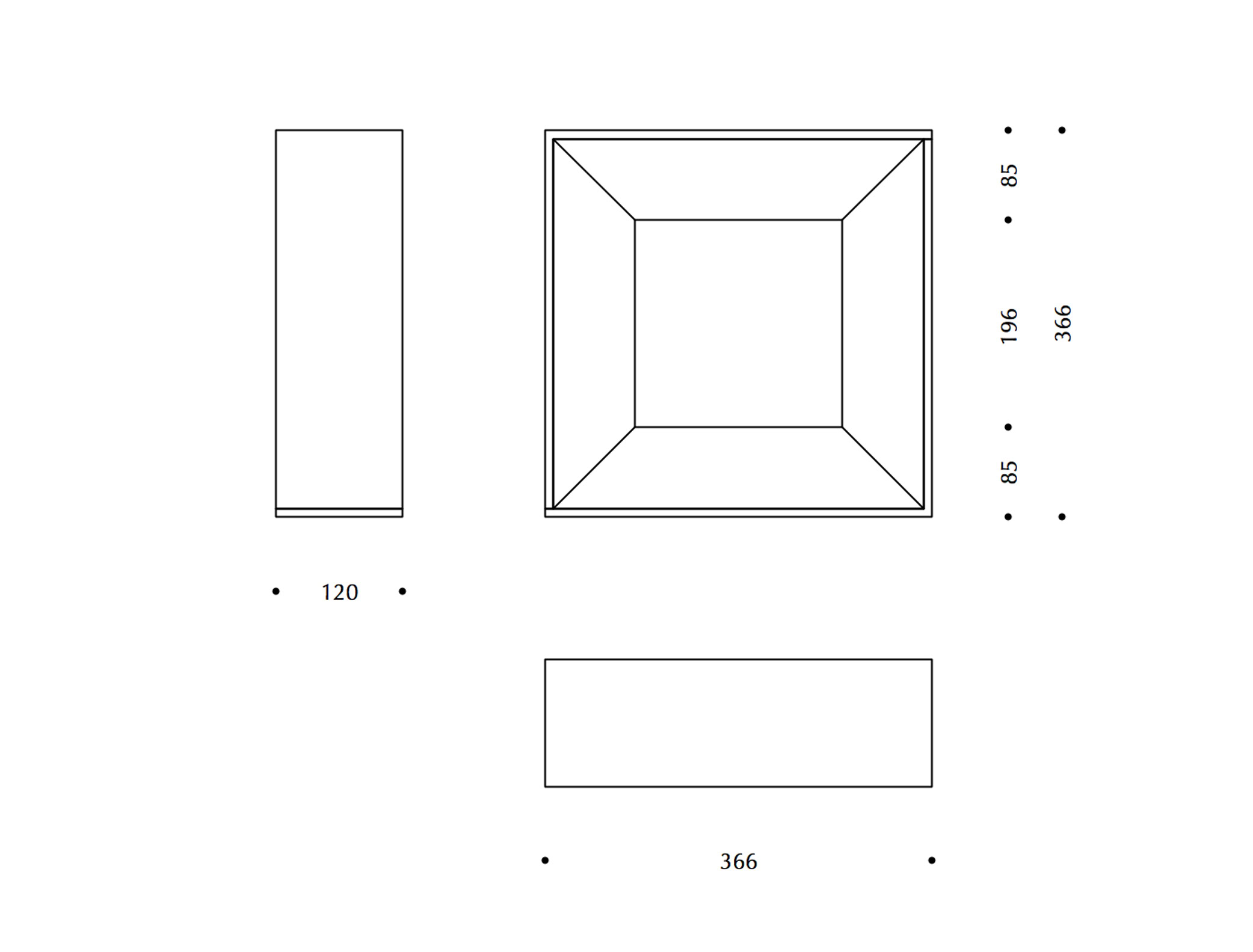 L’aspetto della lampada è di un quadrato, il cui perimetro viene definito da un profilo a sezione triangolare. Il quadrato ed il triangolo concorrono a denotare il design della lampada come rigoroso e geometrico… Ma la luce e le ombre, con diverse sfumature, aggiungono valori emozionali ed espressivi oltre che funzionali.